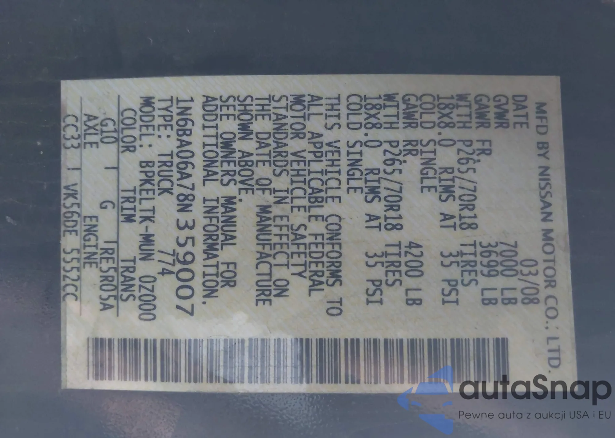 • VIN: 1N6BA06A78N359007