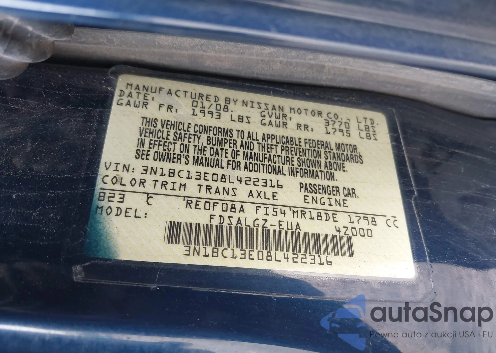 VIN: 3N1BC13E08L422316