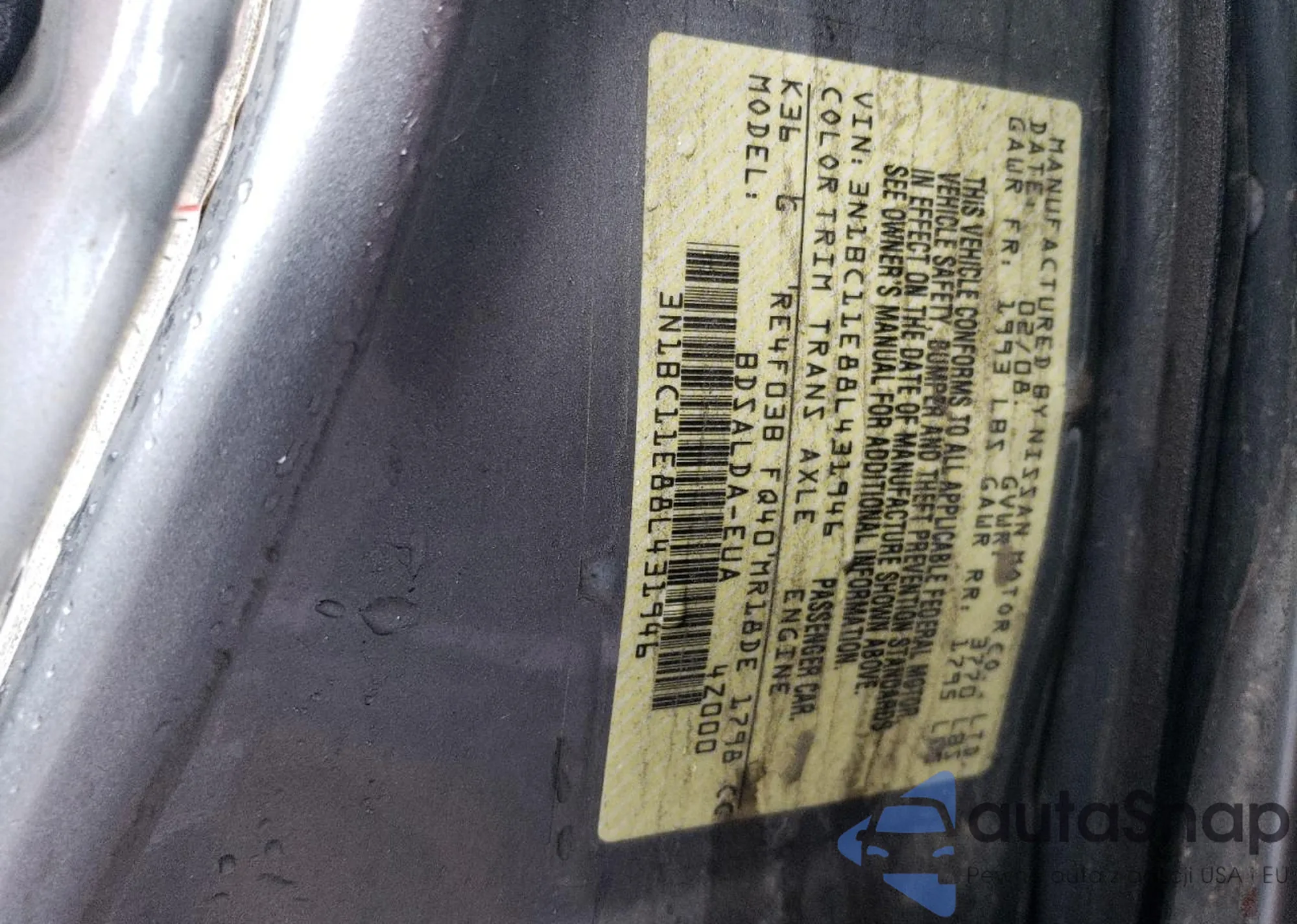 VIN: 3N1BC11E88L431946