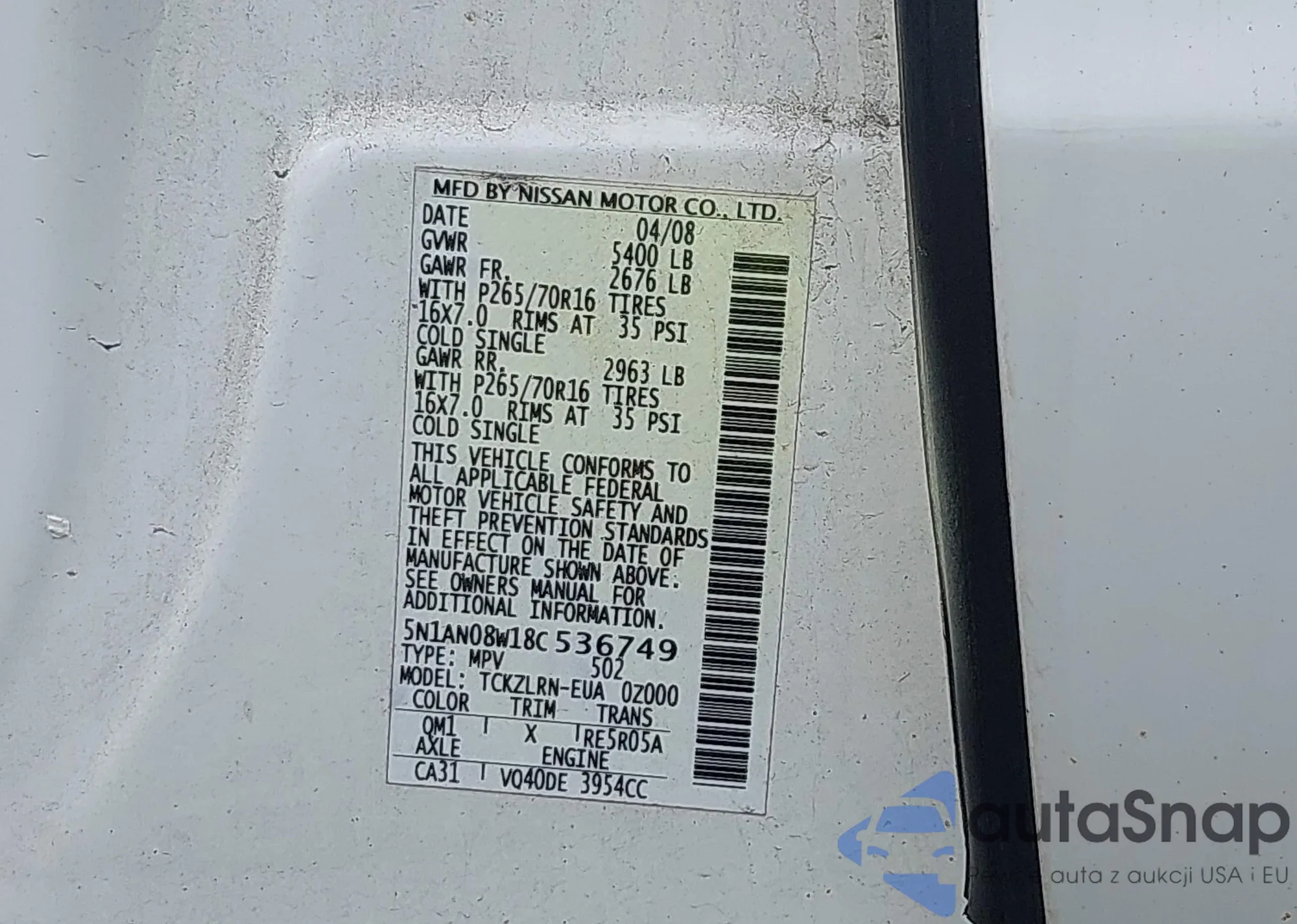 VIN: 5N1AN08W18C536749