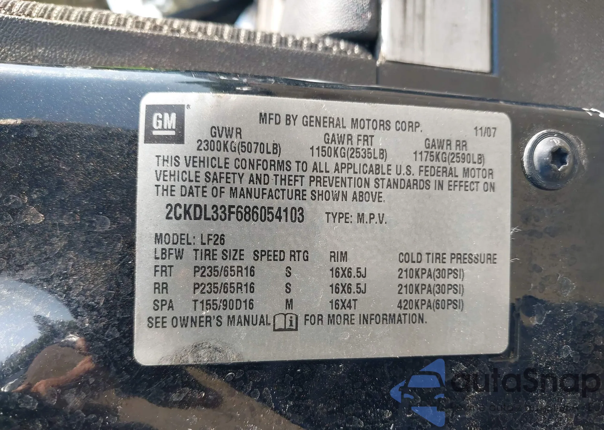 The car Pontiac Torrent 2008 (VIN 2CKDL33F686054103) has not been auctioned before. The documents are clean, and the mileage matches or is below the market average. Sold by an insurance company – we recommend purchase. Delivery to the port will take approx. 6–8 weeks.