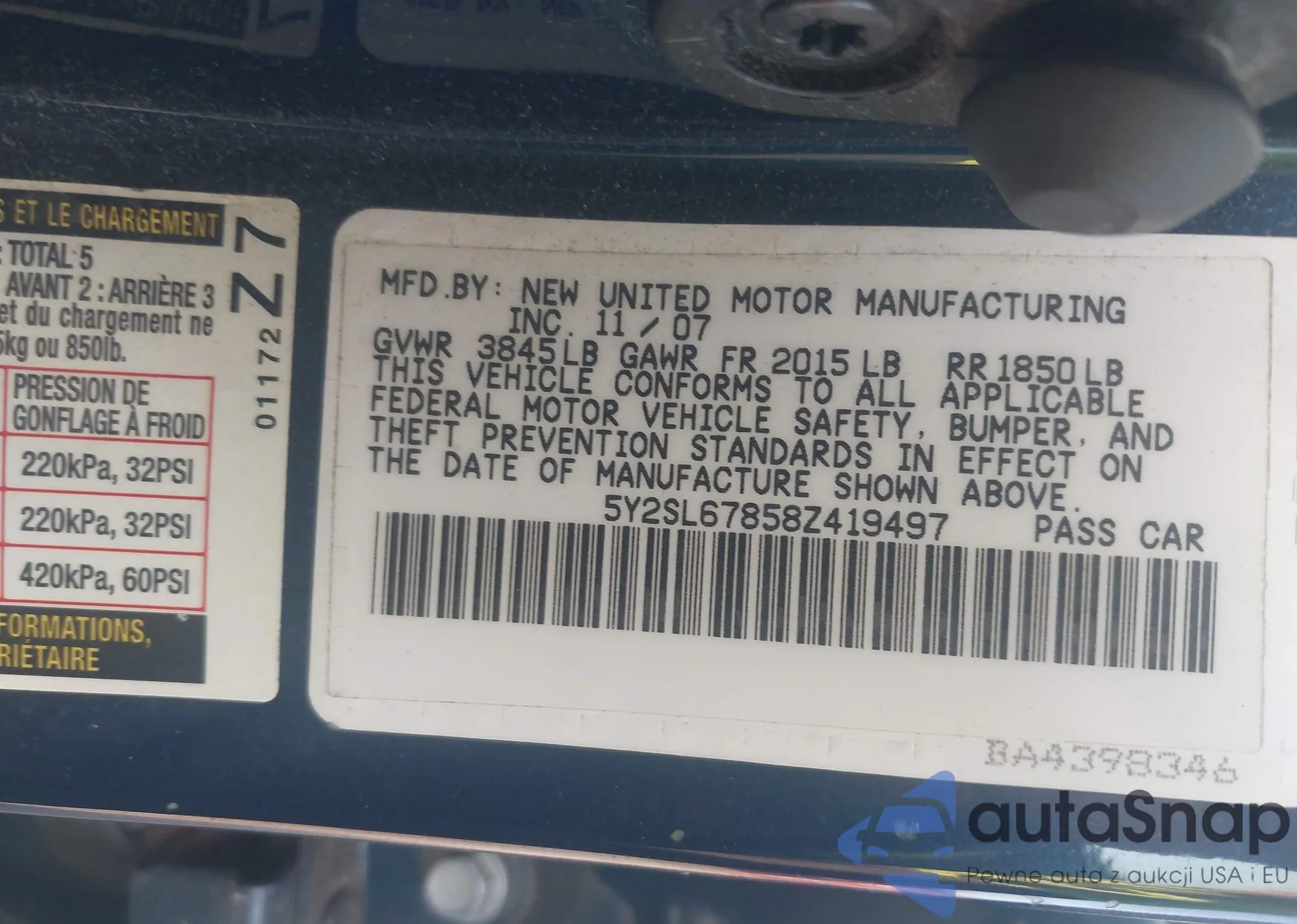 VIN: 5Y2SL67858Z419497