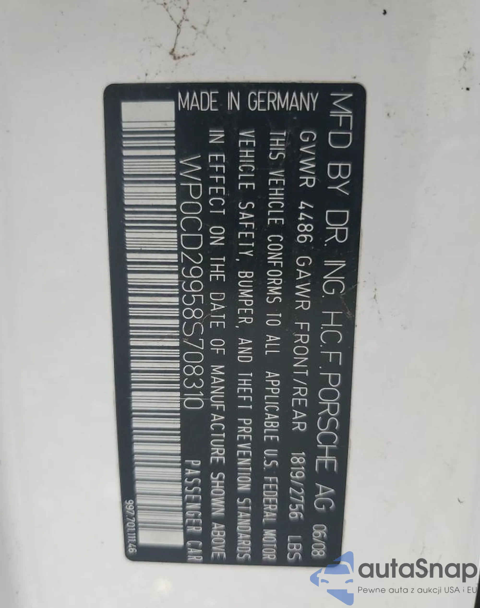 VIN: WP0CD29958S708310