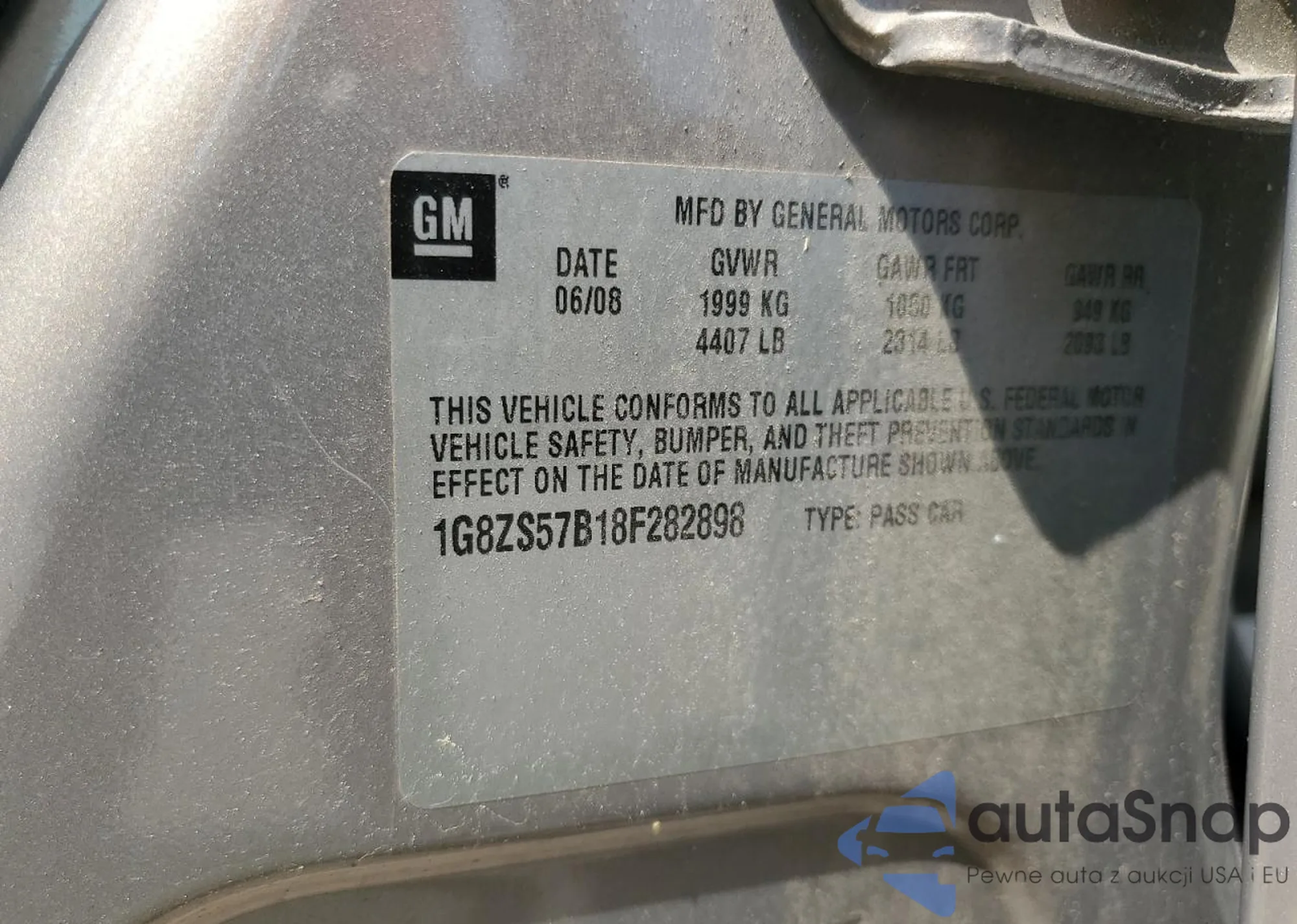 • VIN: 1G8ZS57B18F282898