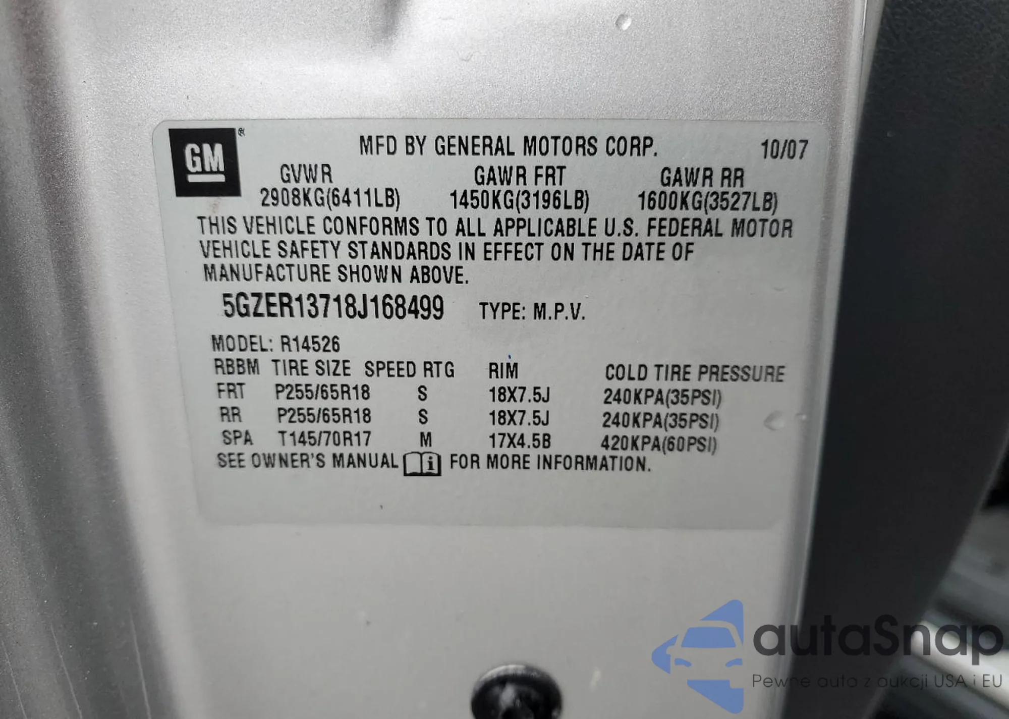 The car Saturn Outlook 2008 (VIN 5GZER13718J168499) is sold by an unverified seller. We recommend checking the Carfax report and confirming registration possibilities before purchase.