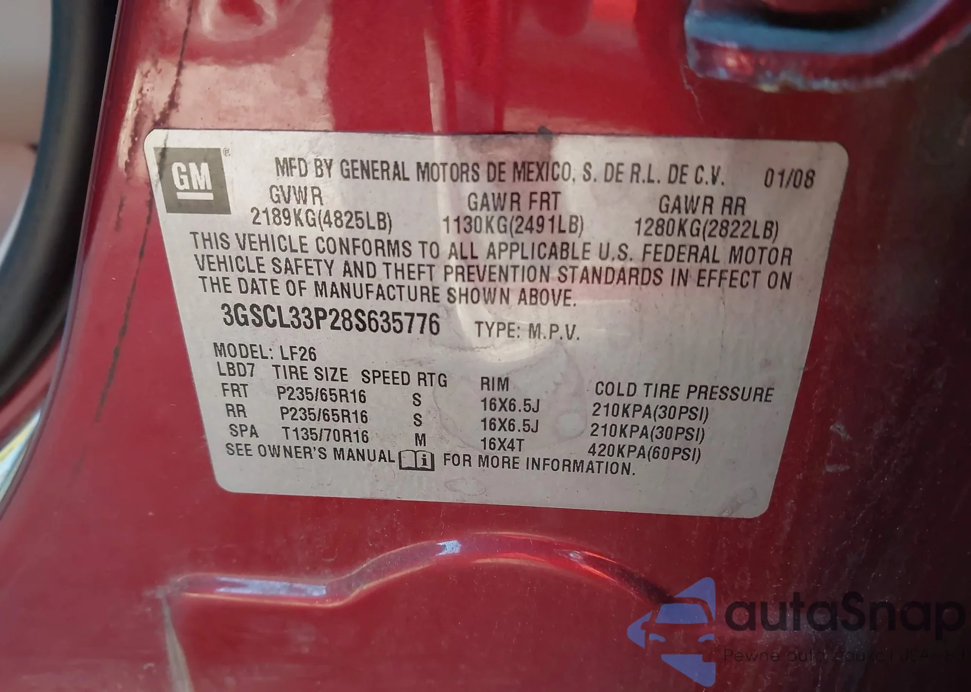 VIN: 3GSCL33P28S635776