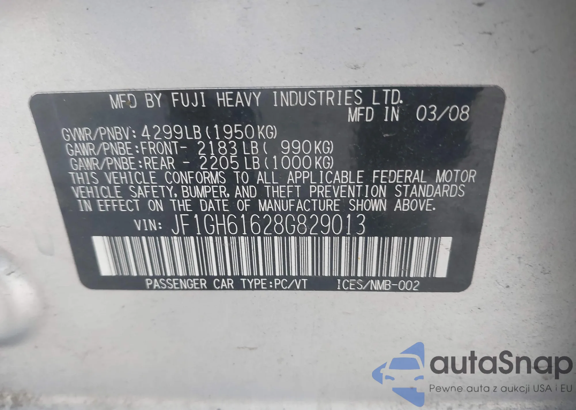 VIN: JF1GH61628G829013