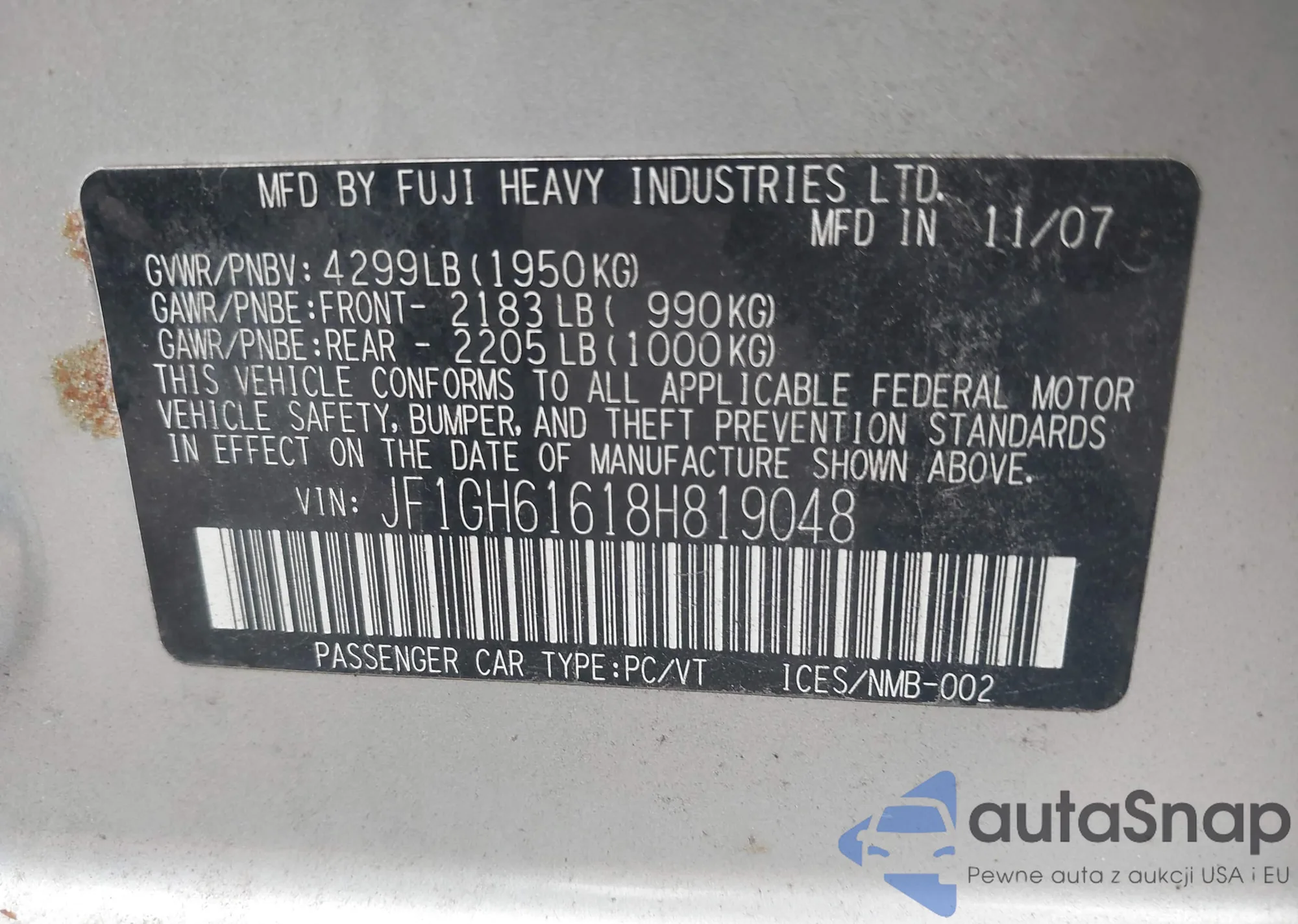 VIN: JF1GH61618H819048