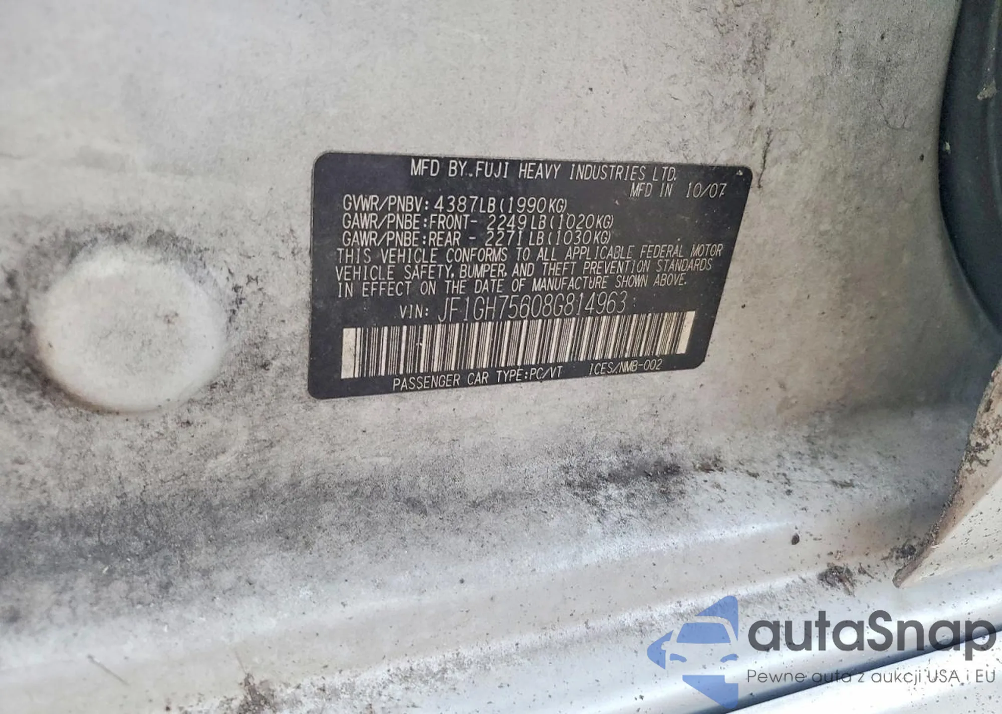 The car Subaru Impreza 2008 (VIN JF1GH75608G814963) is sold by an unverified seller. We recommend checking the Carfax report and confirming registration possibilities before purchase.