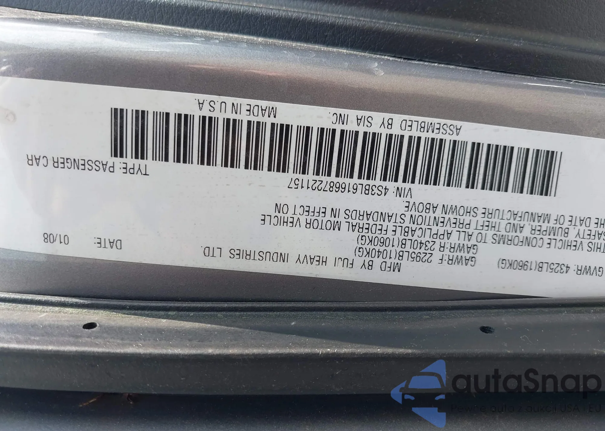 VIN: 4S3BL616687221157