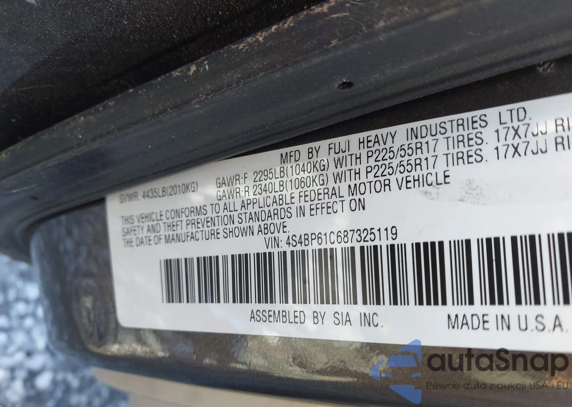 VIN: 4S4BP61C687325119