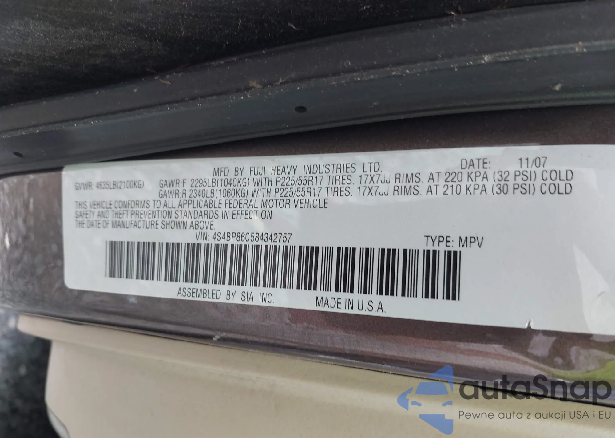 VIN: 4S4BP86C584342757