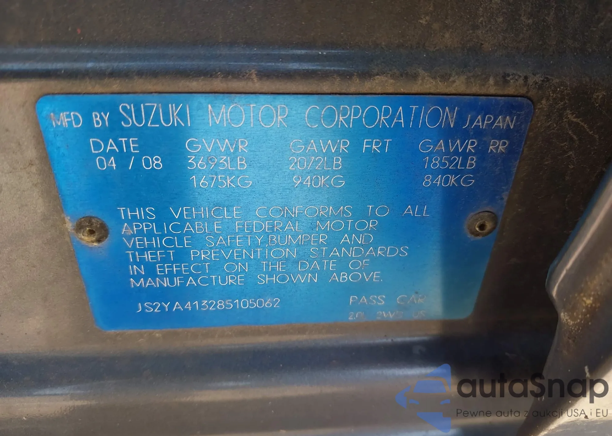 VIN: JS2YA413285105062
