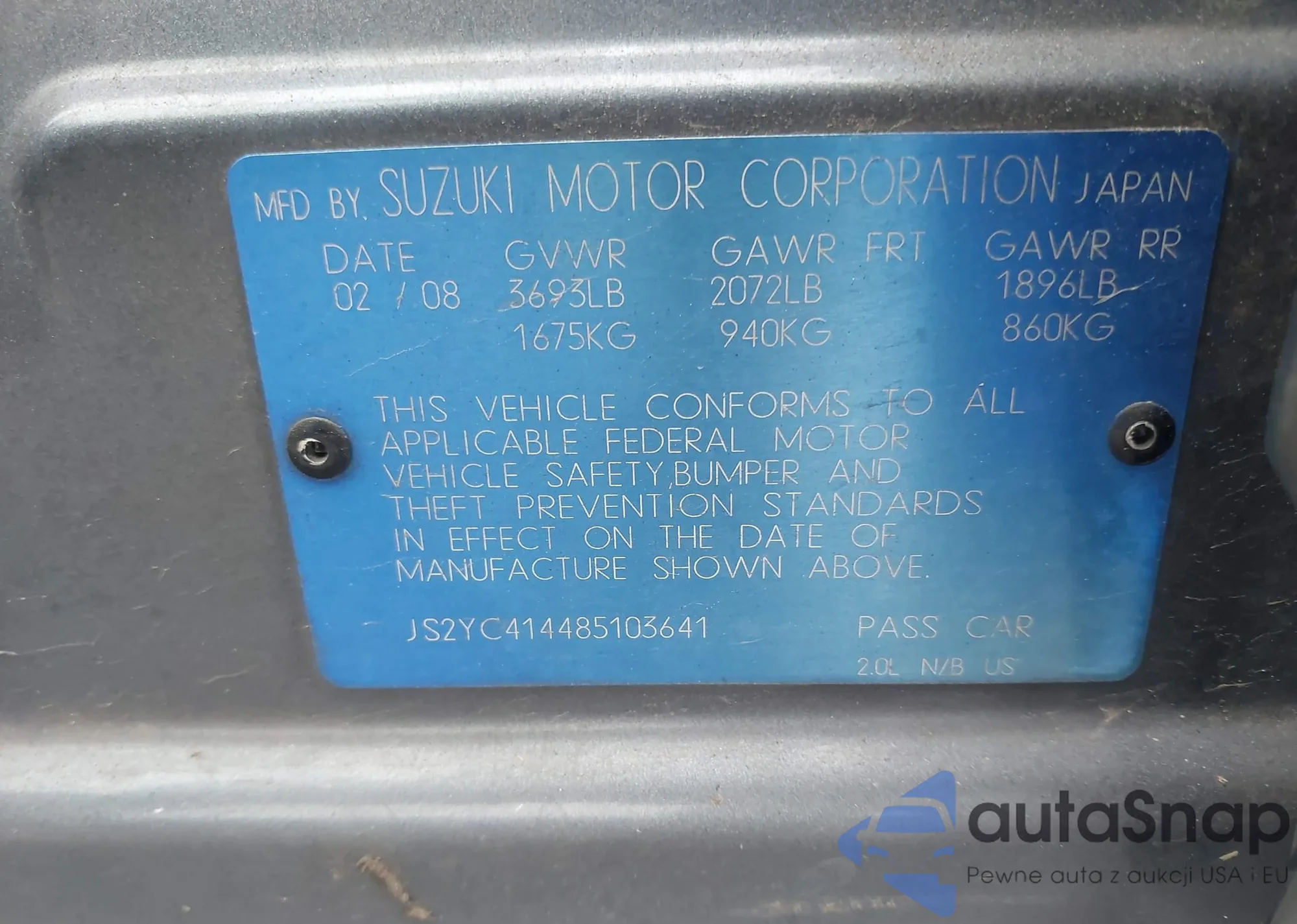 • VIN: JS2YC414485103641