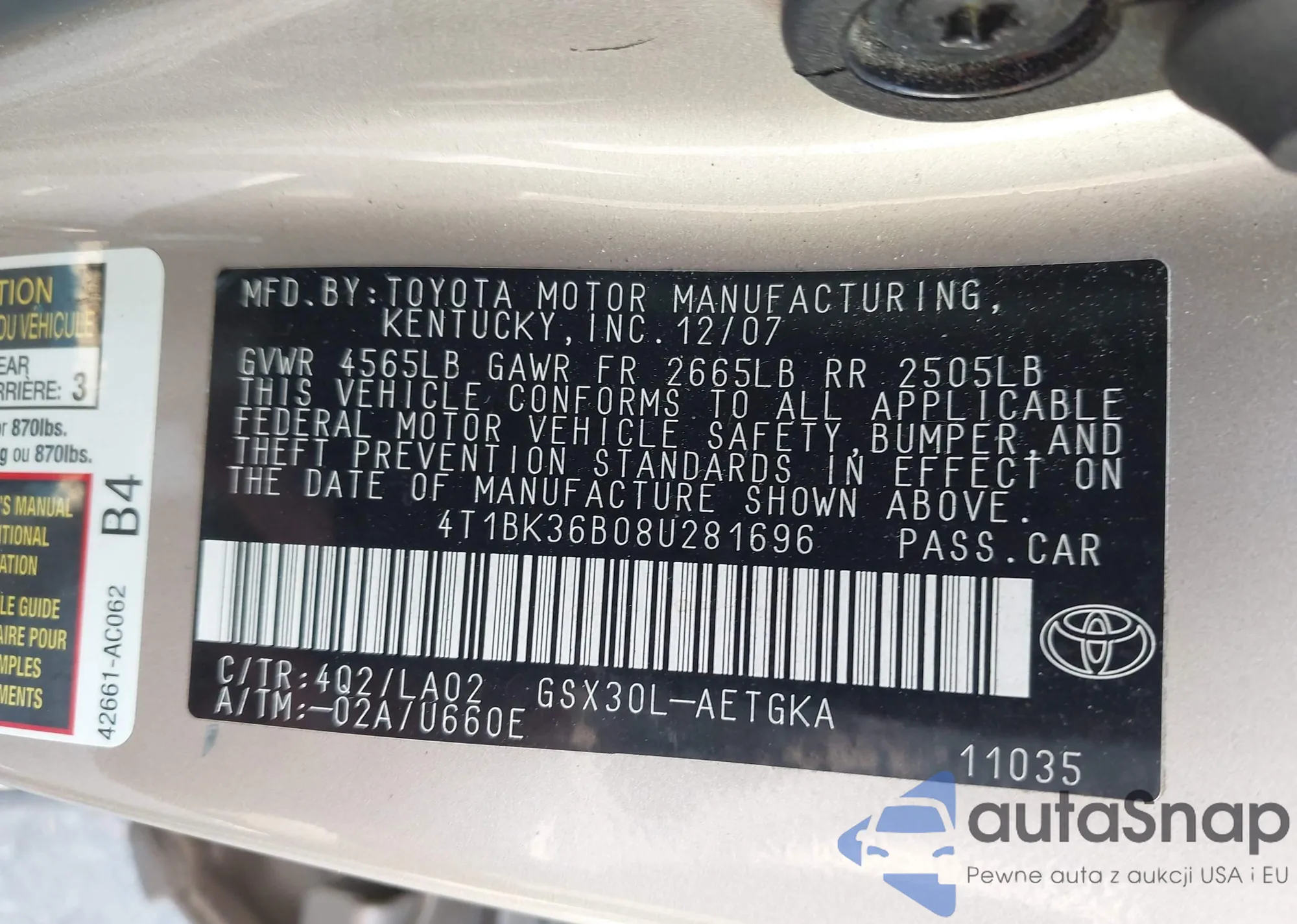 VIN: 4T1BK36B08U281696