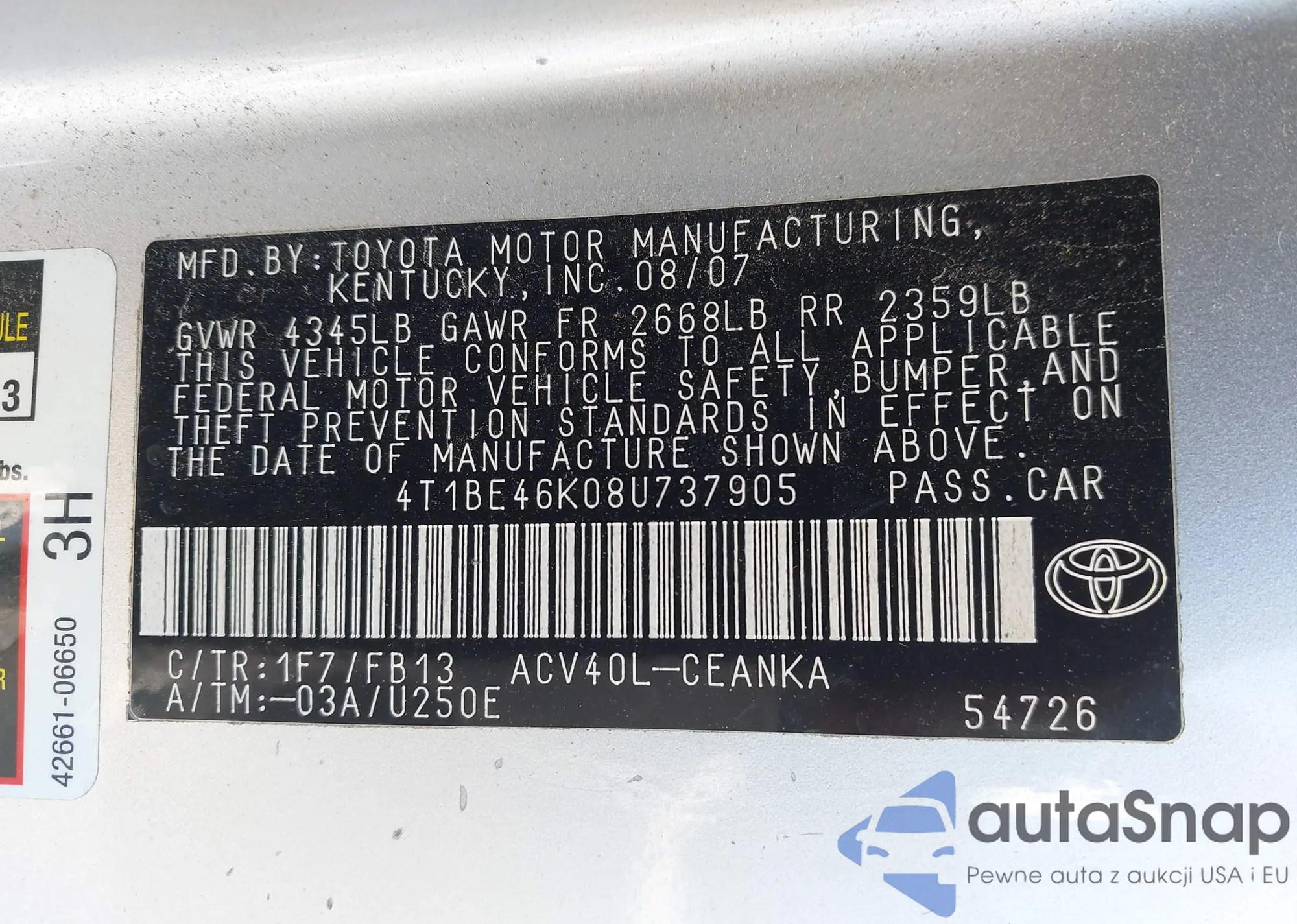 VIN: 4T1BE46K08U737905