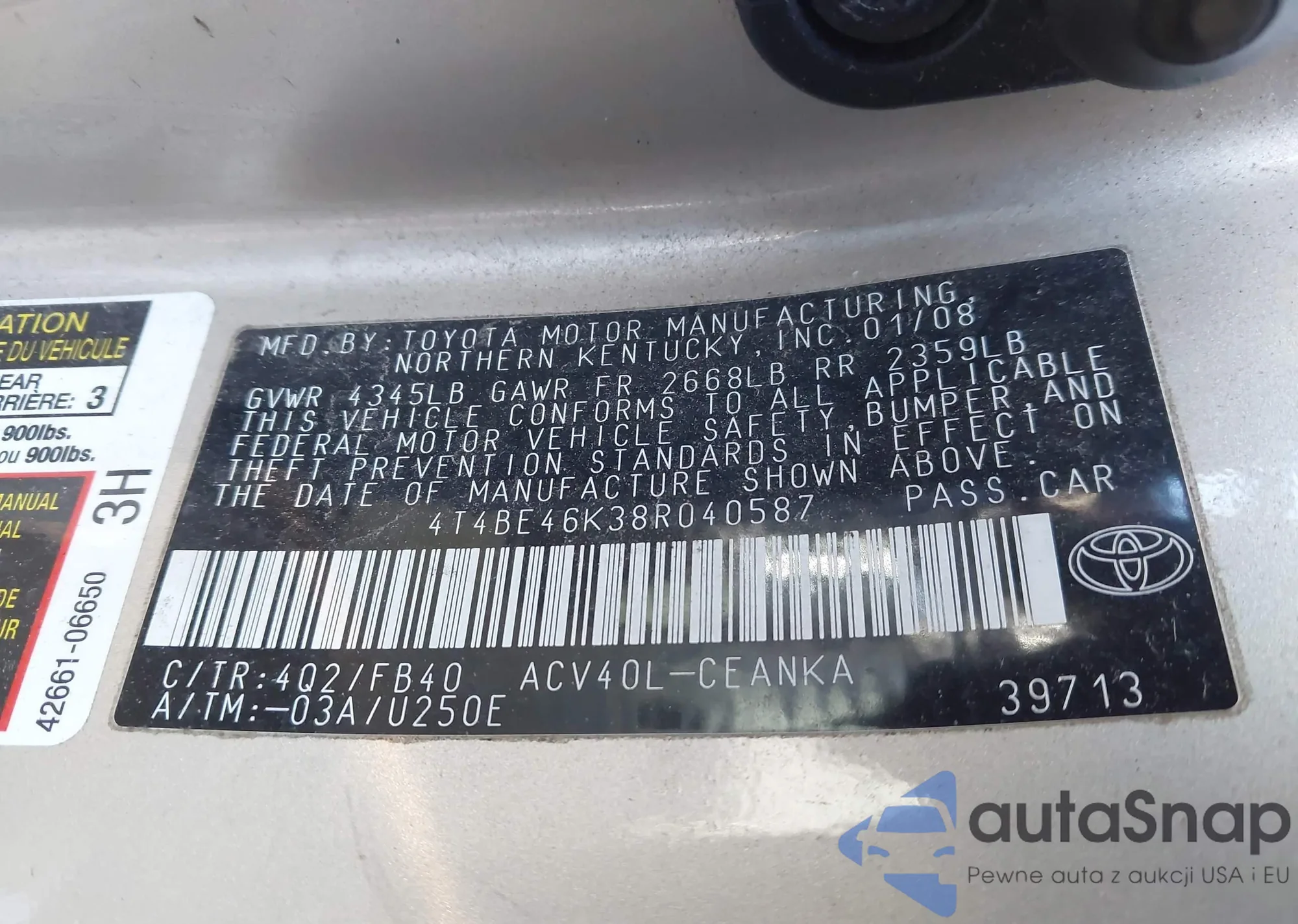 VIN: 4T4BE46K38R040587
