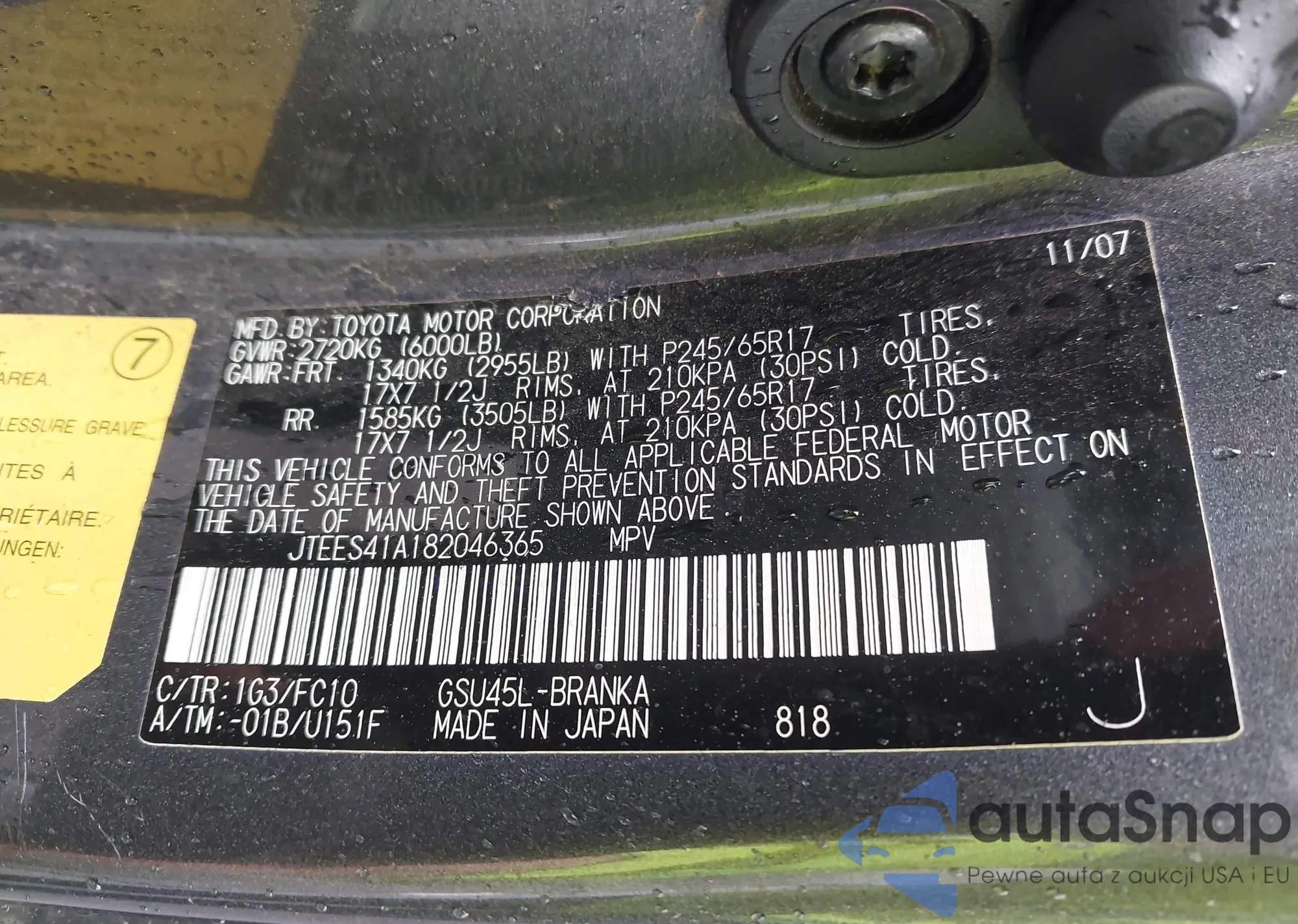 • VIN: JTEES41A182046365