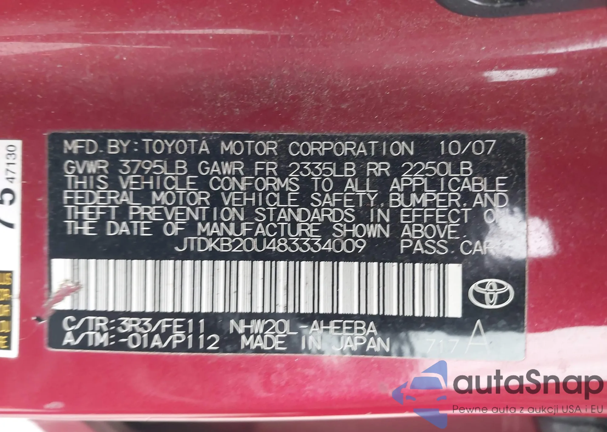 VIN: JTDKB20U483334009