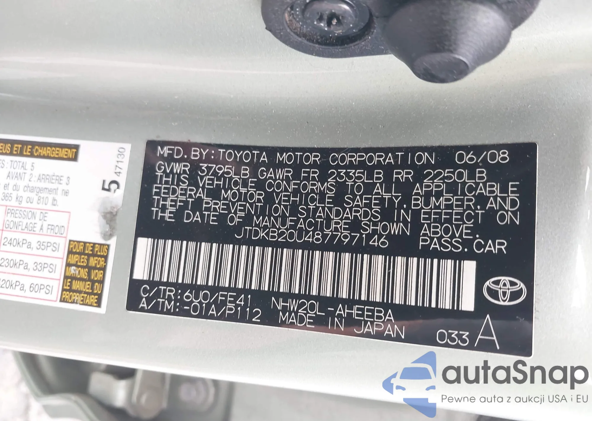 VIN: JTDKB20U487797146