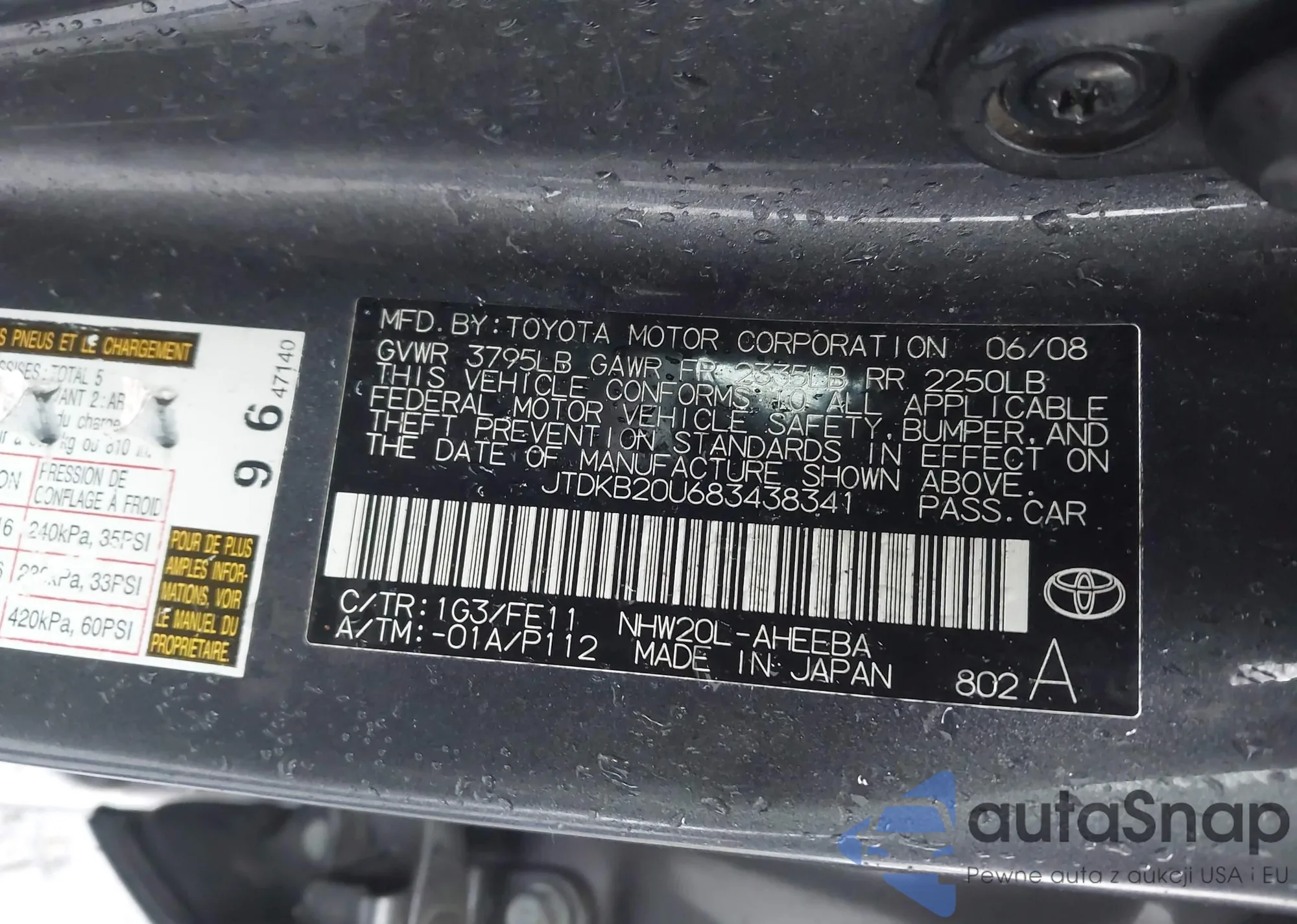 • VIN: JTDKB20U683438341