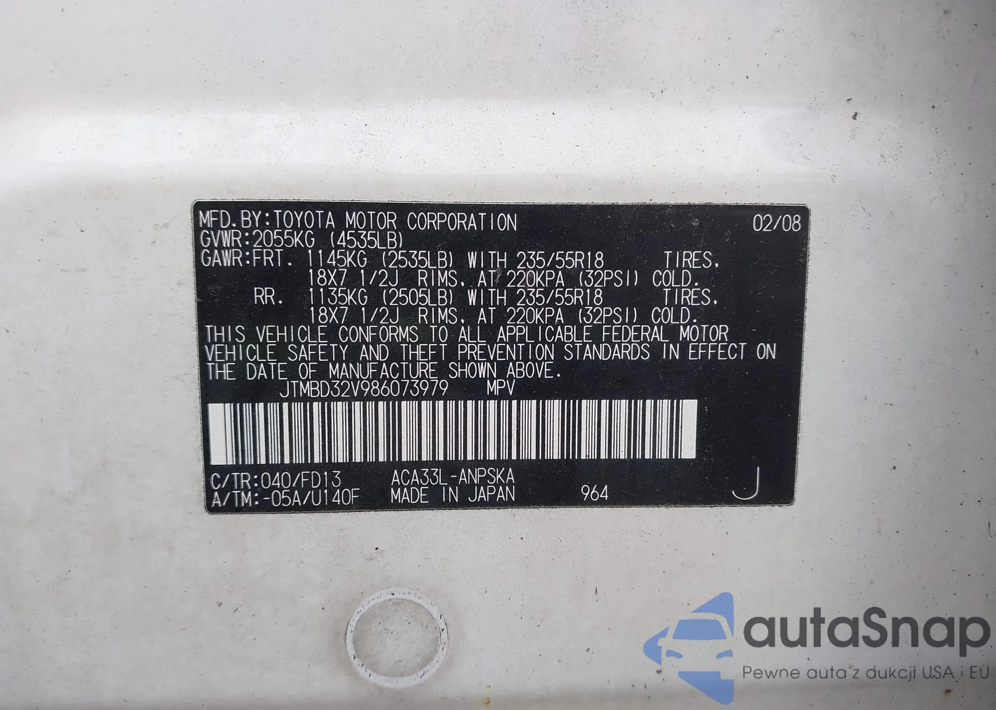 VIN: JTMBD32V986073979