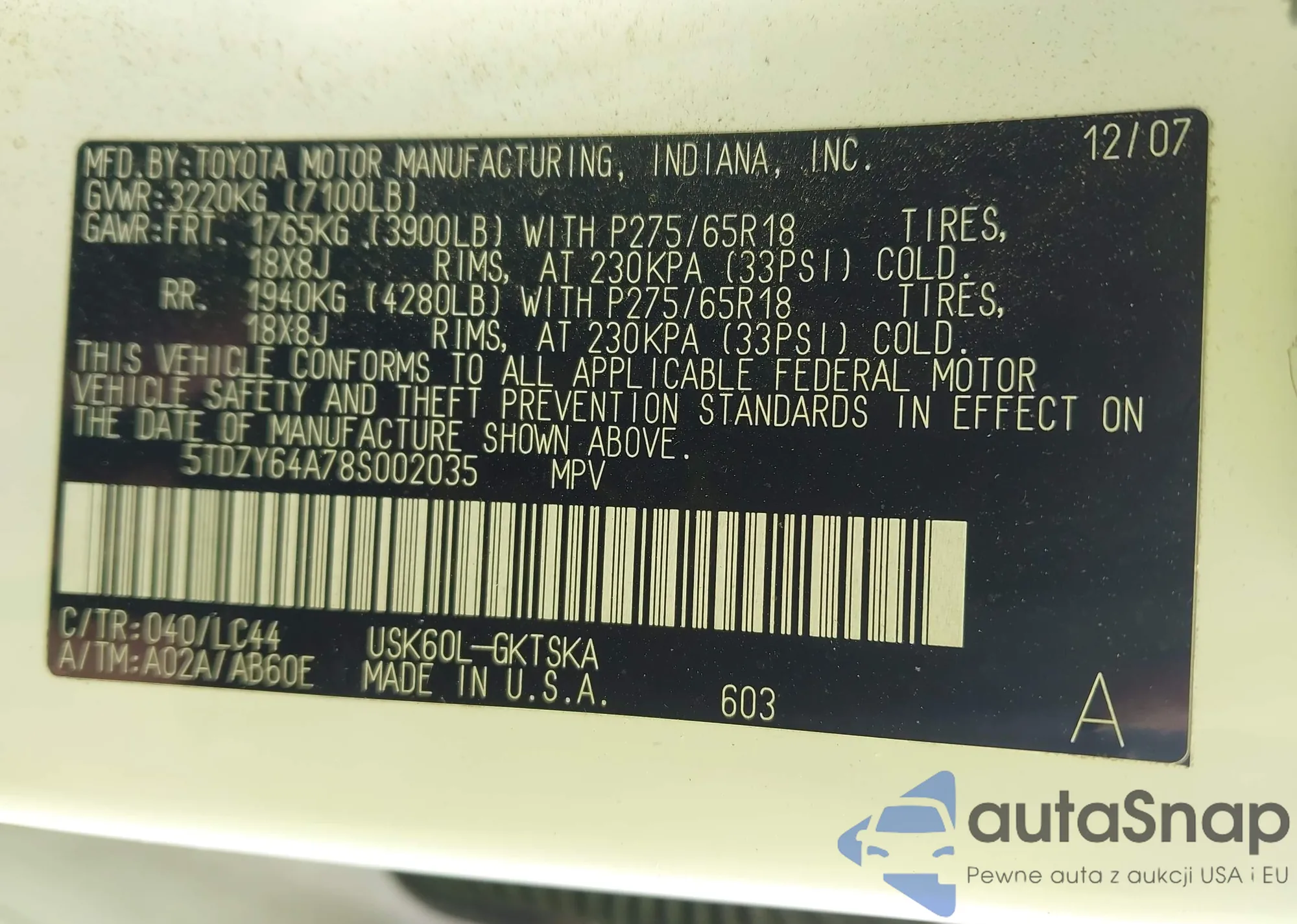 VIN: 5TDZY64A78S002035