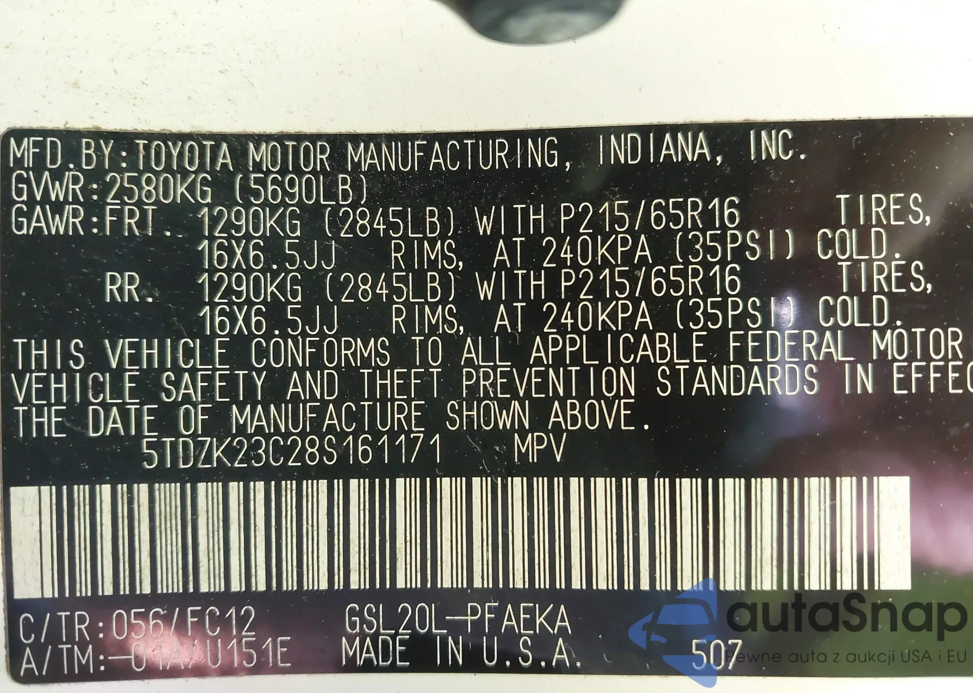 VIN: 5TDZK23C28S161171