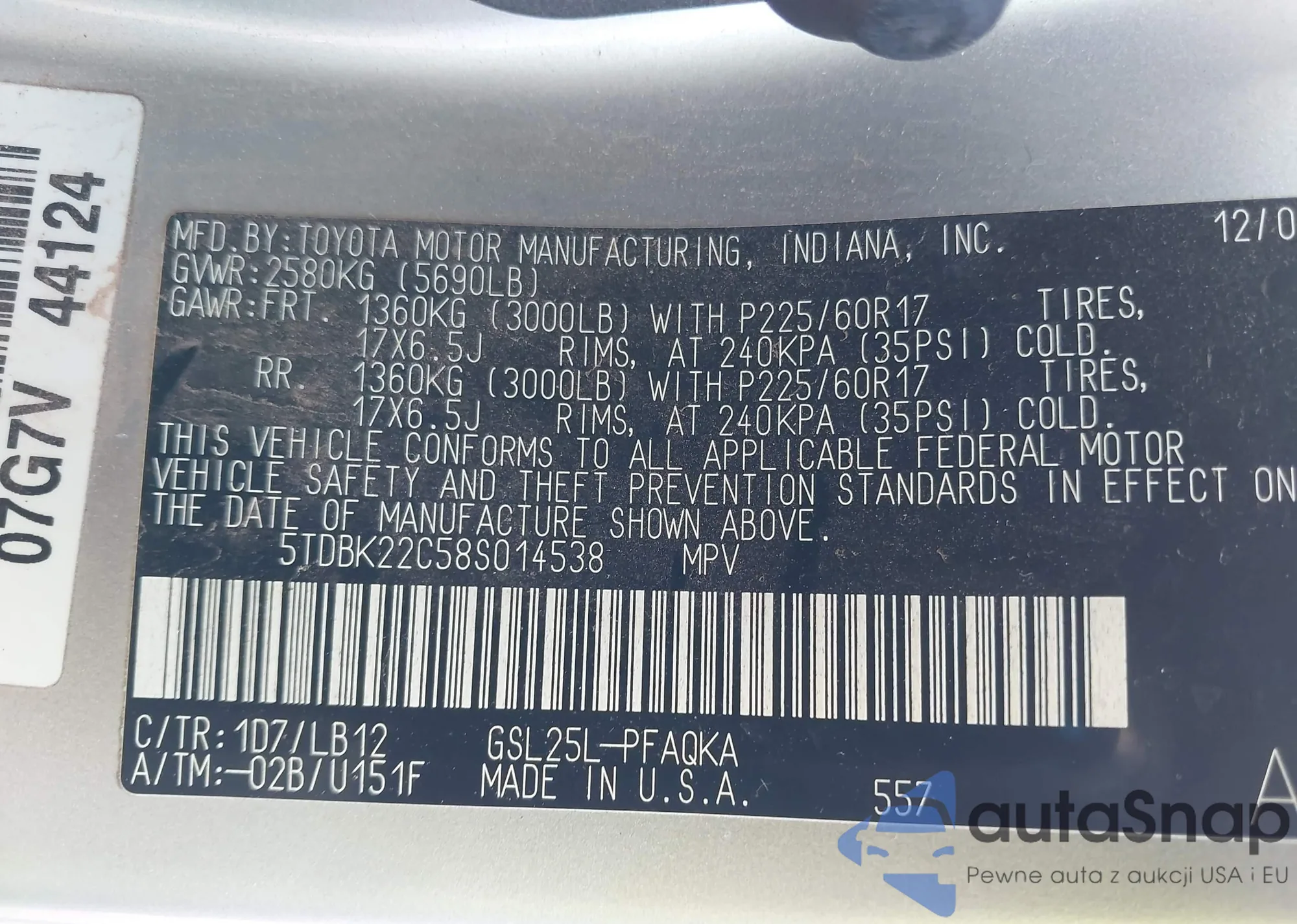 • VIN: 5TDBK22C58S014538