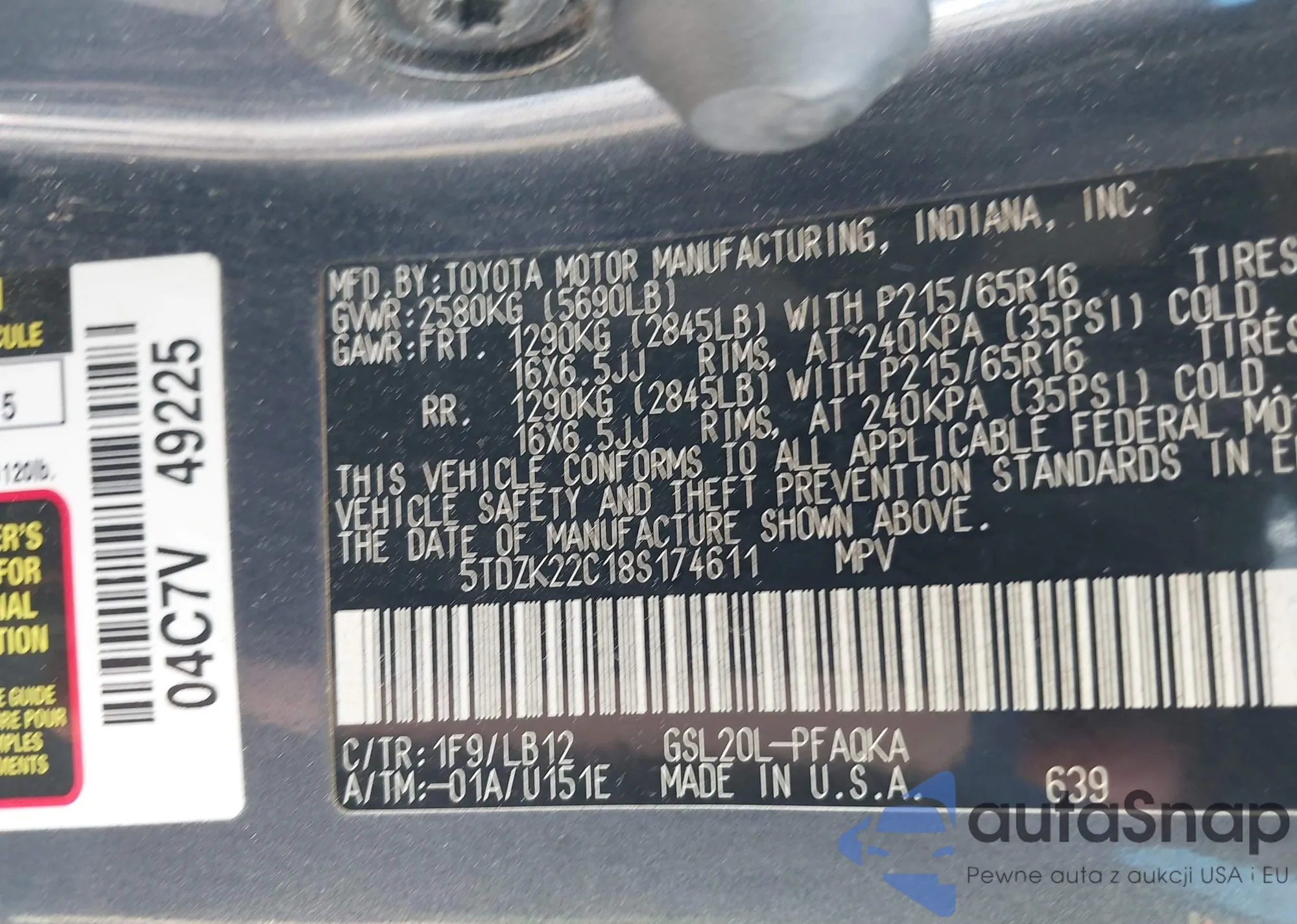 Toyota Sienna 2008 – Vehicle History (Sold at IAAI)