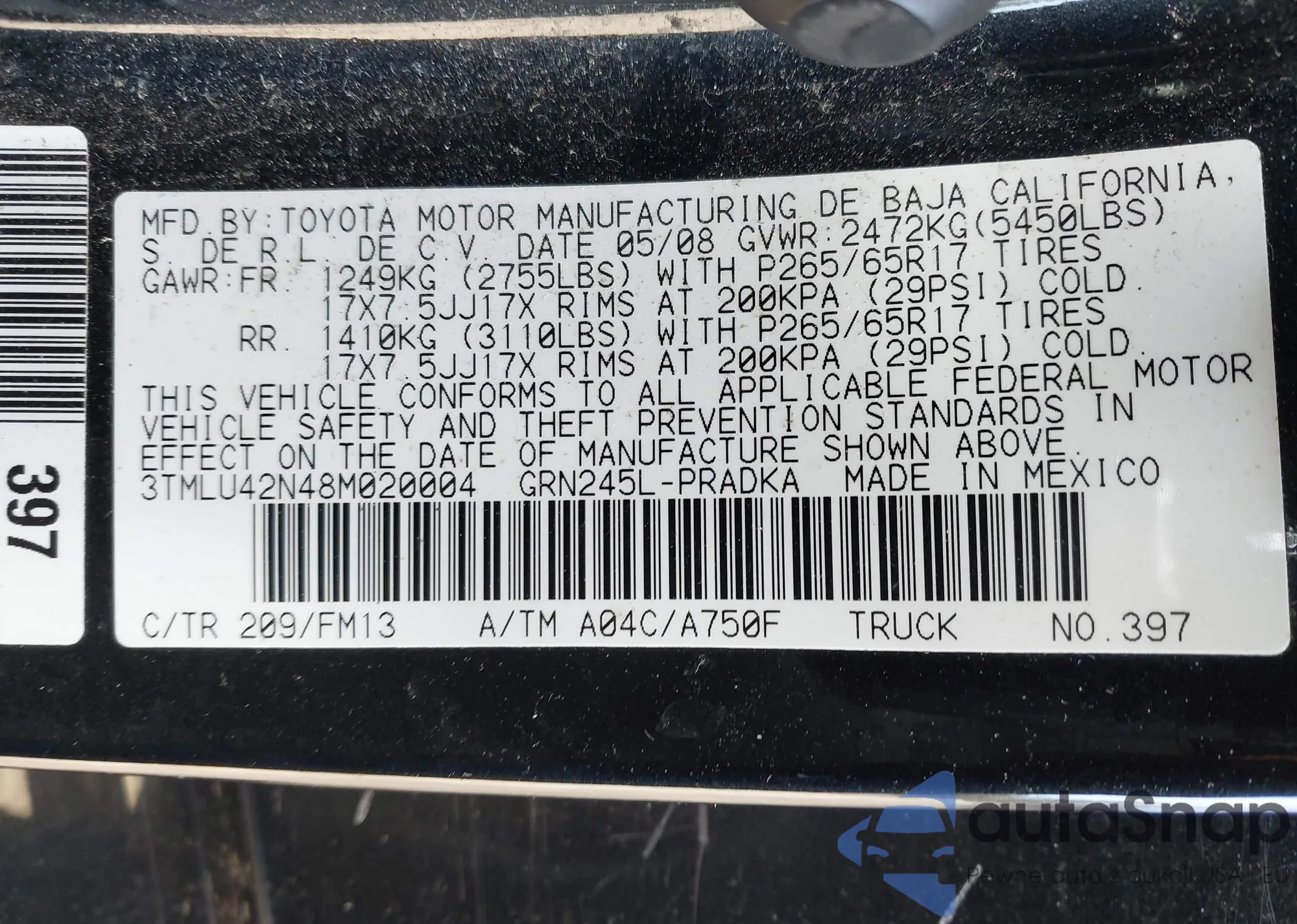 The car Toyota Tacoma 2008 (VIN 3TMLU42N48M020004) is sold by an unverified seller. We recommend checking the Carfax report and confirming registration possibilities before purchase.