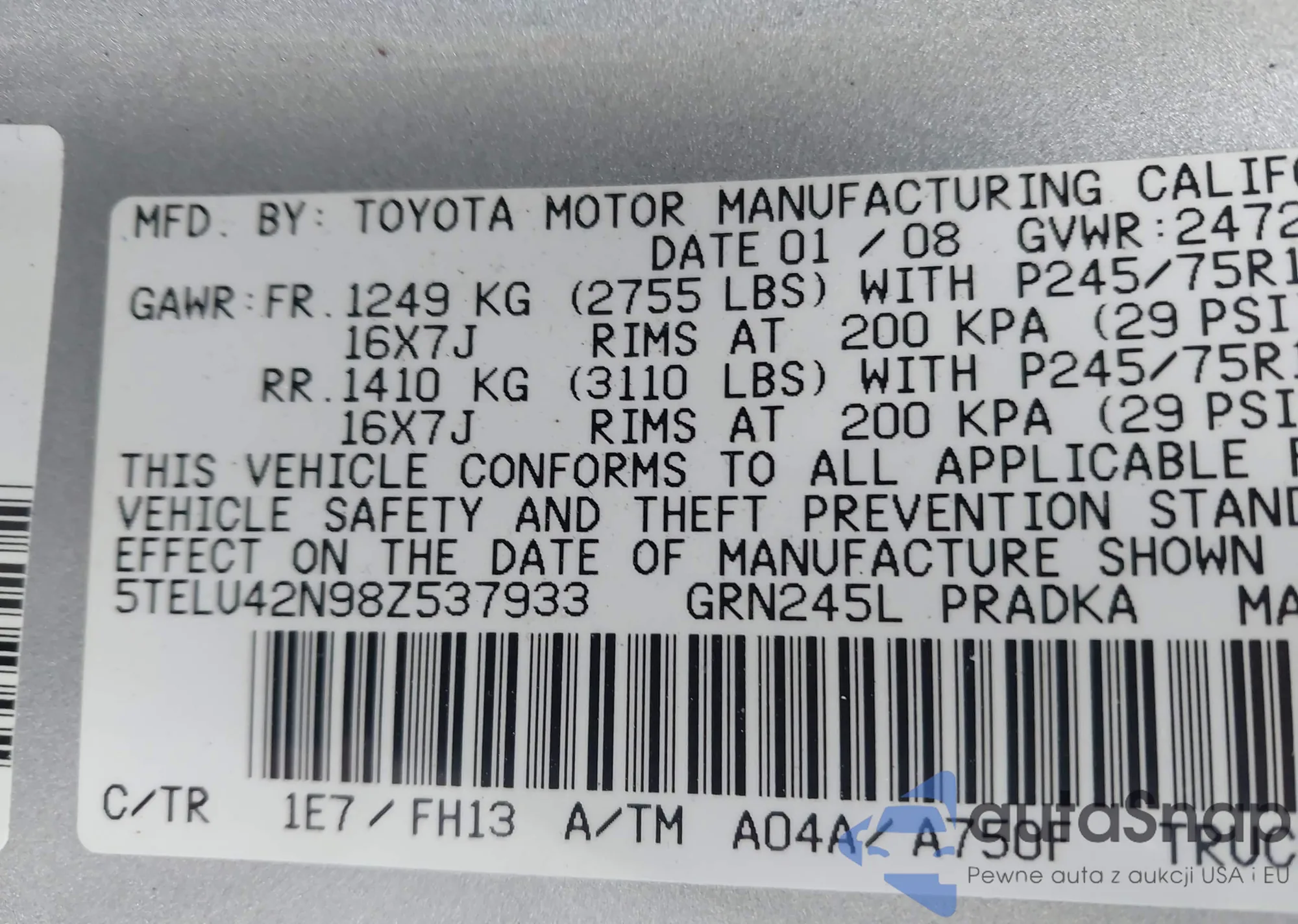 VIN: 5TELU42N98Z537933