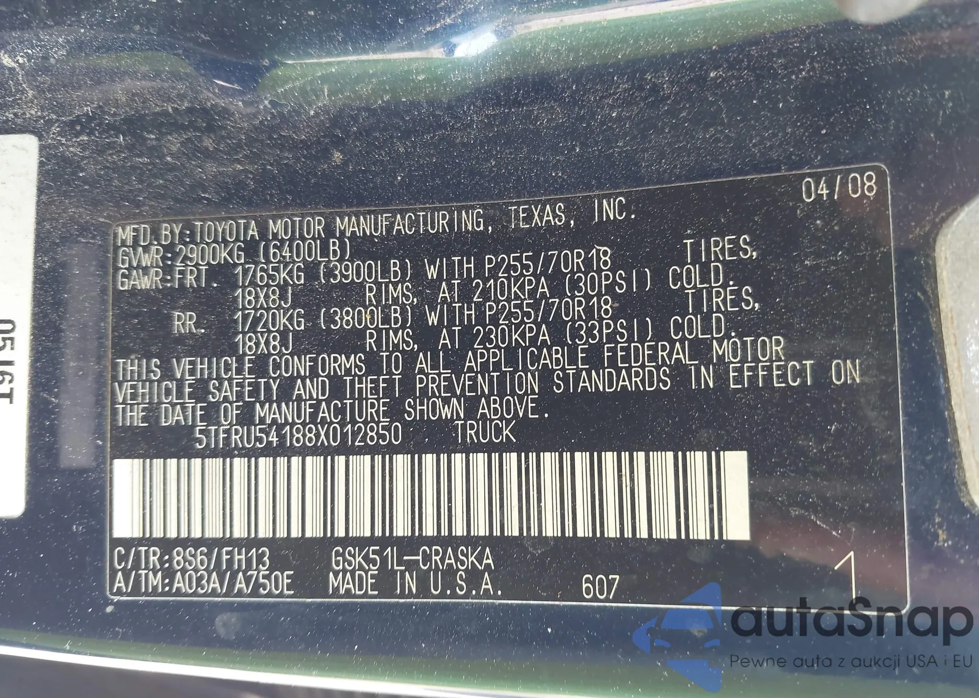 VIN: 5TFRU54188X012850