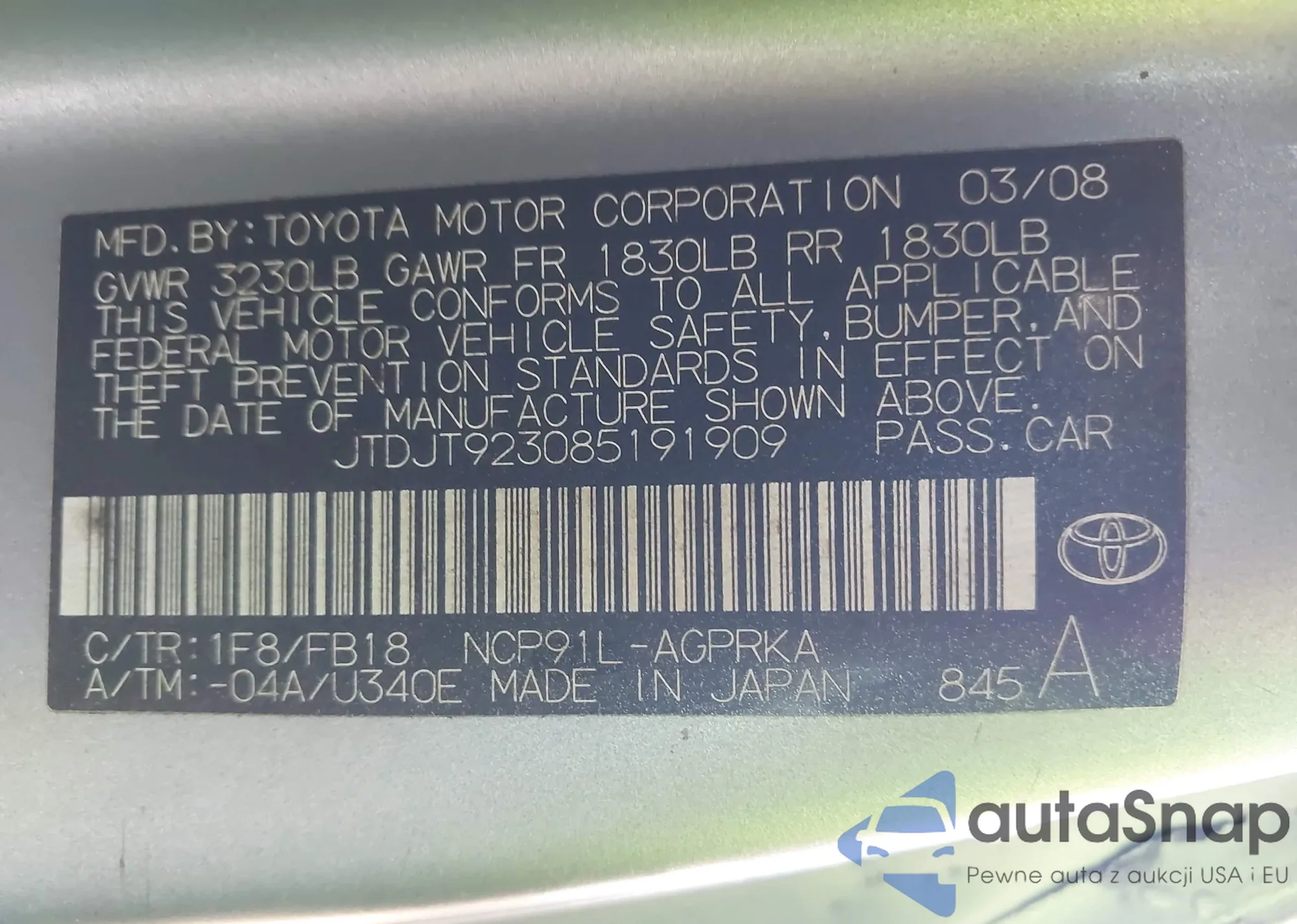 VIN: JTDJT923085191909