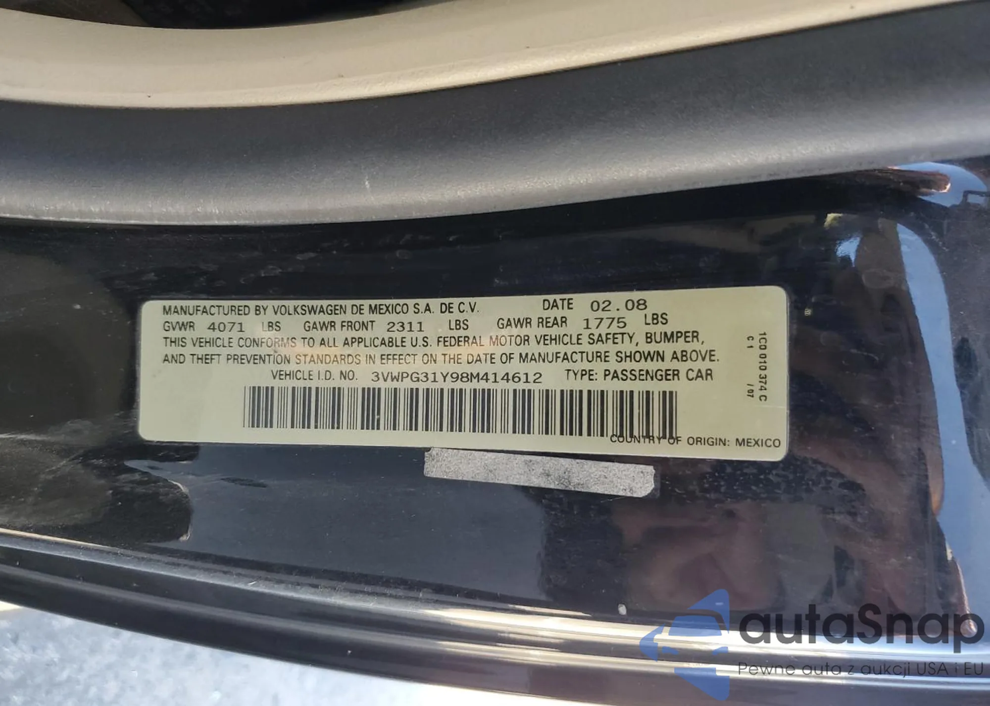 VIN: 3VWPG31Y98M414612