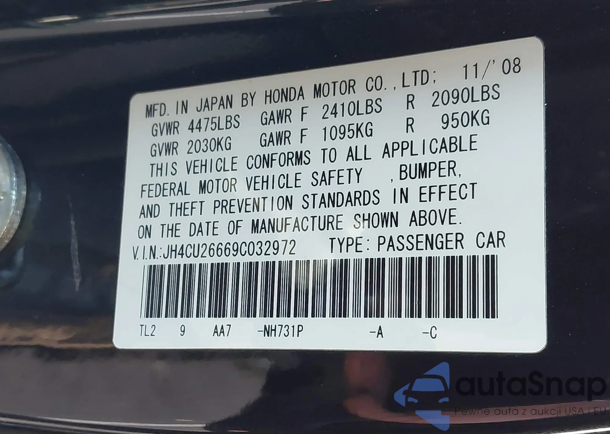 • VIN: JH4CU26669C032972