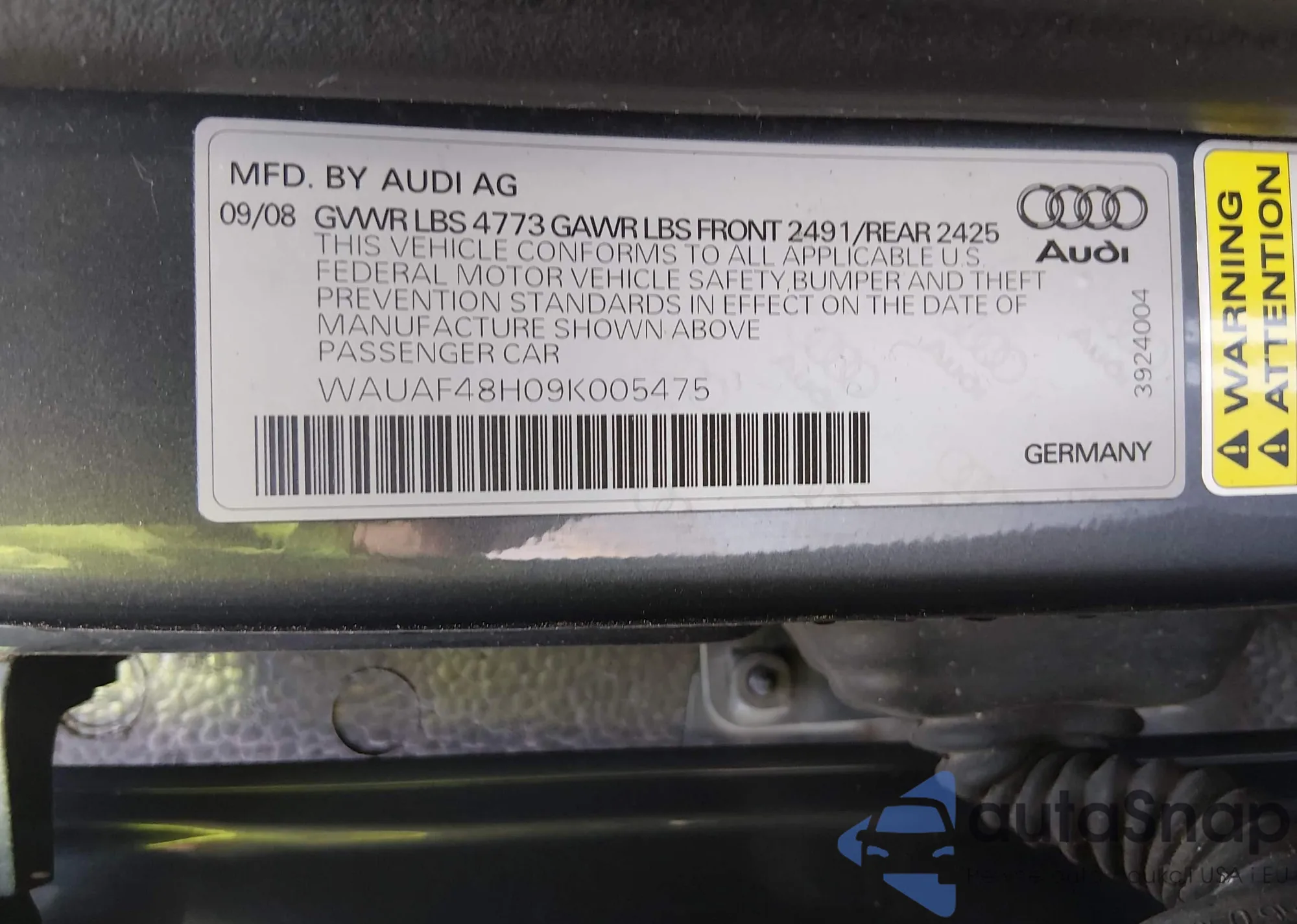 VIN: WAUAF48H09K005475