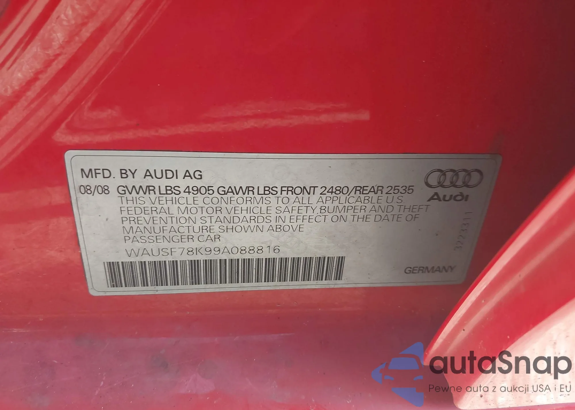 VIN: WAUSF78K99A088816