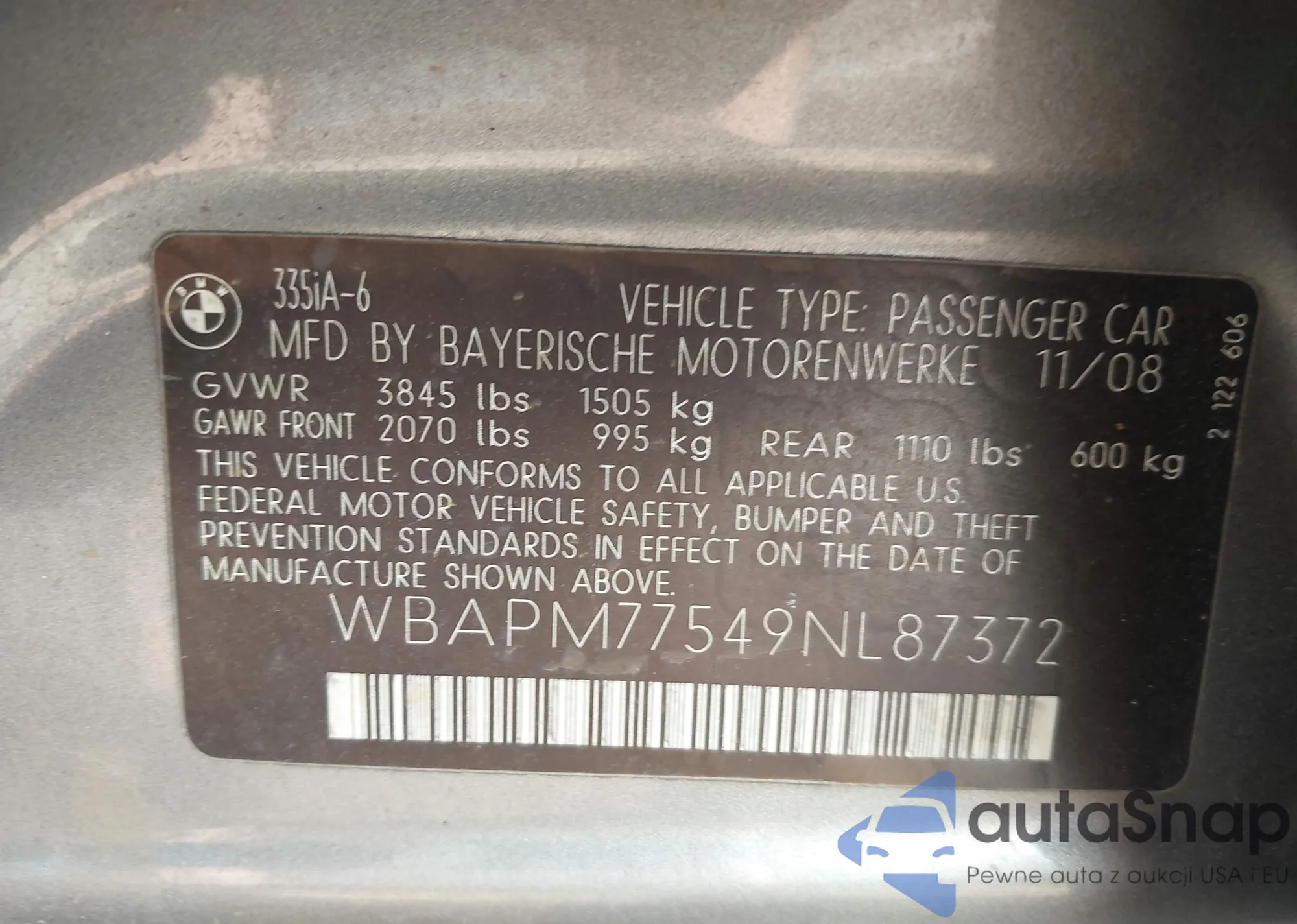 VIN: WBAPM77549NL87372