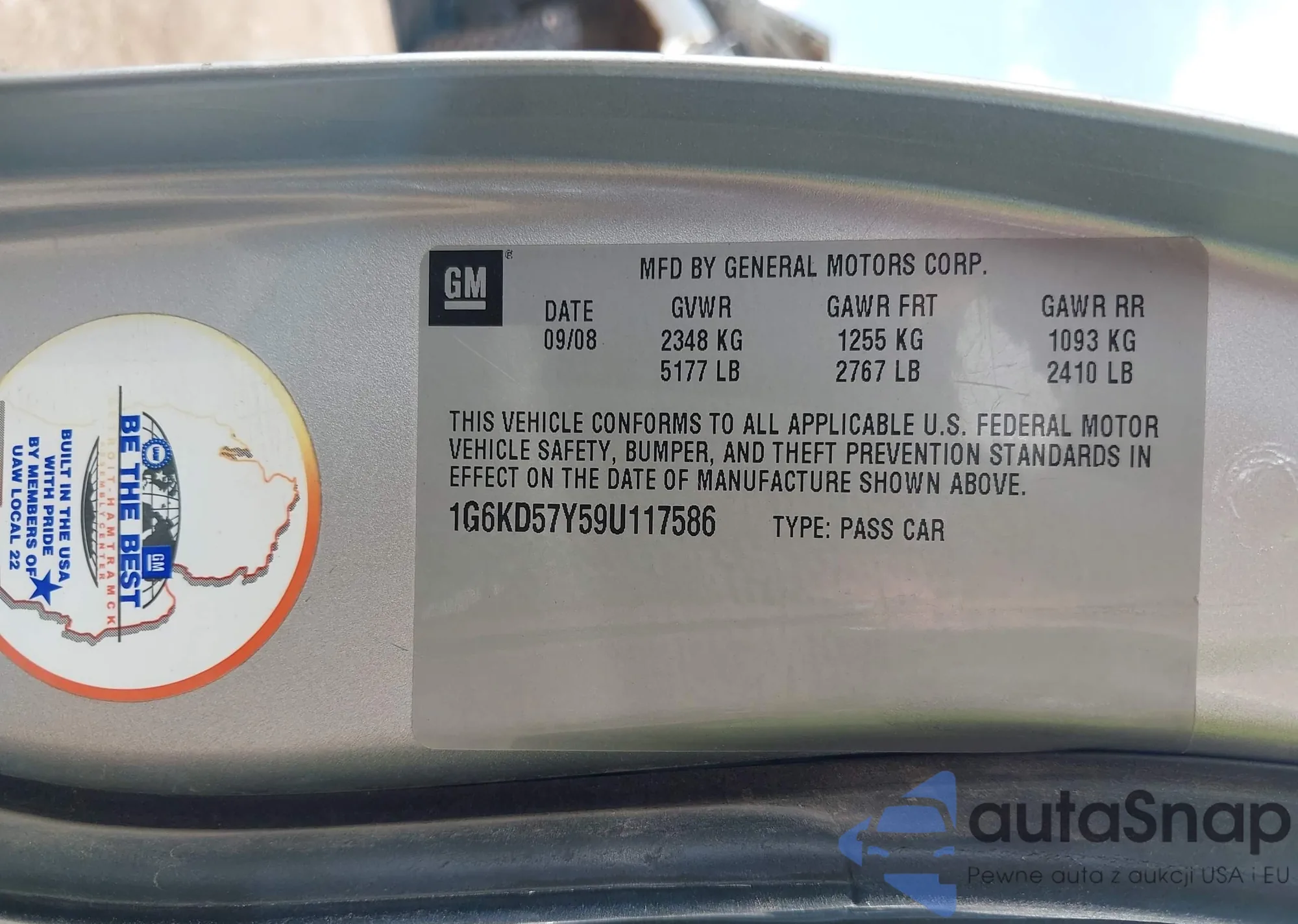 VIN: 1G6KD57Y59U117586