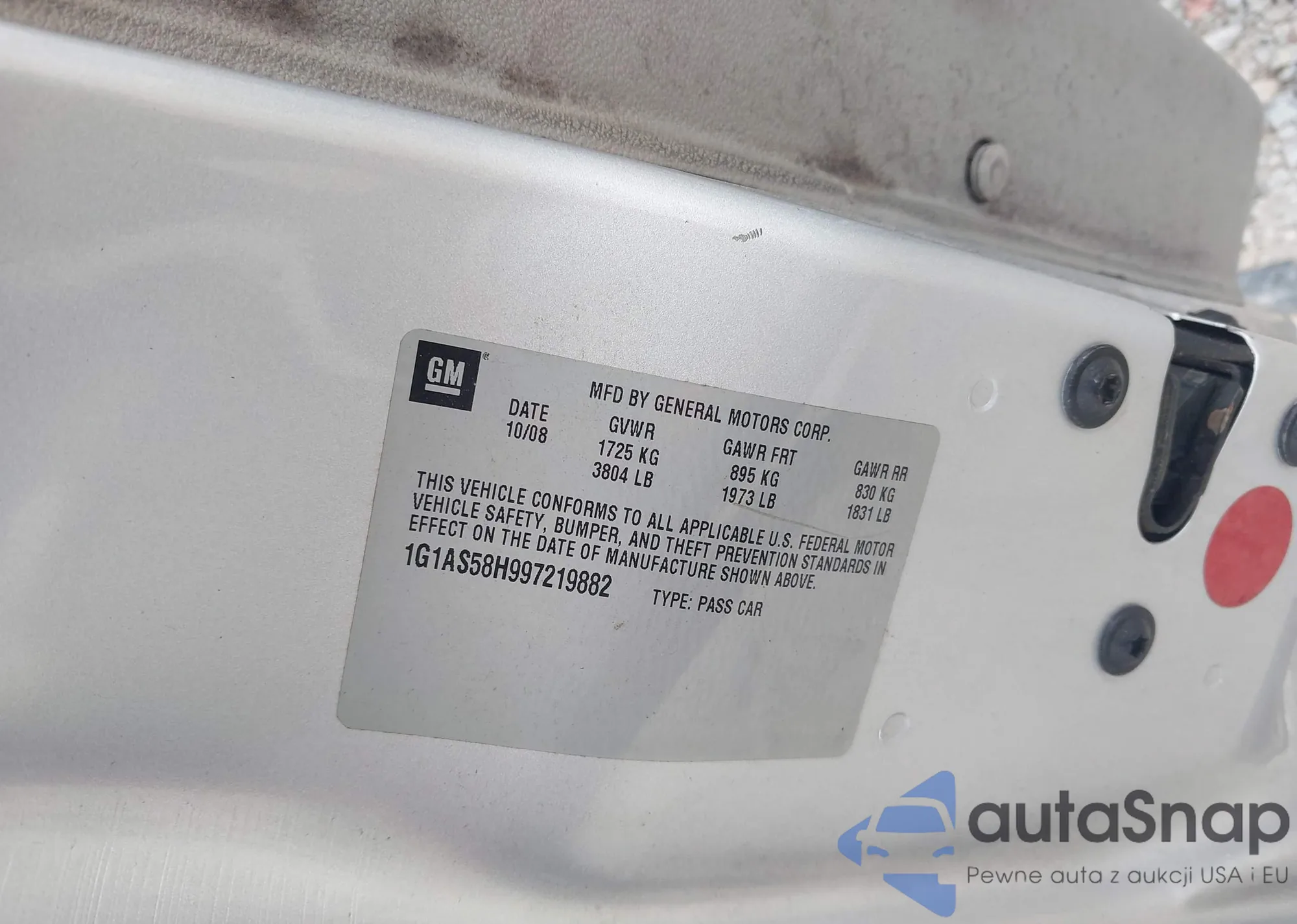 VIN: 1G1AS58H997219882