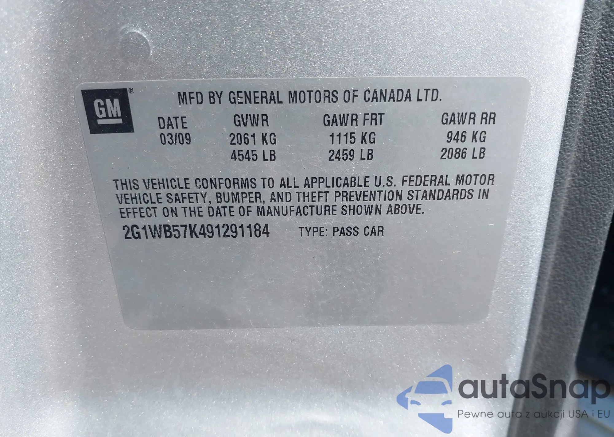 VIN: 2G1WB57K491291184