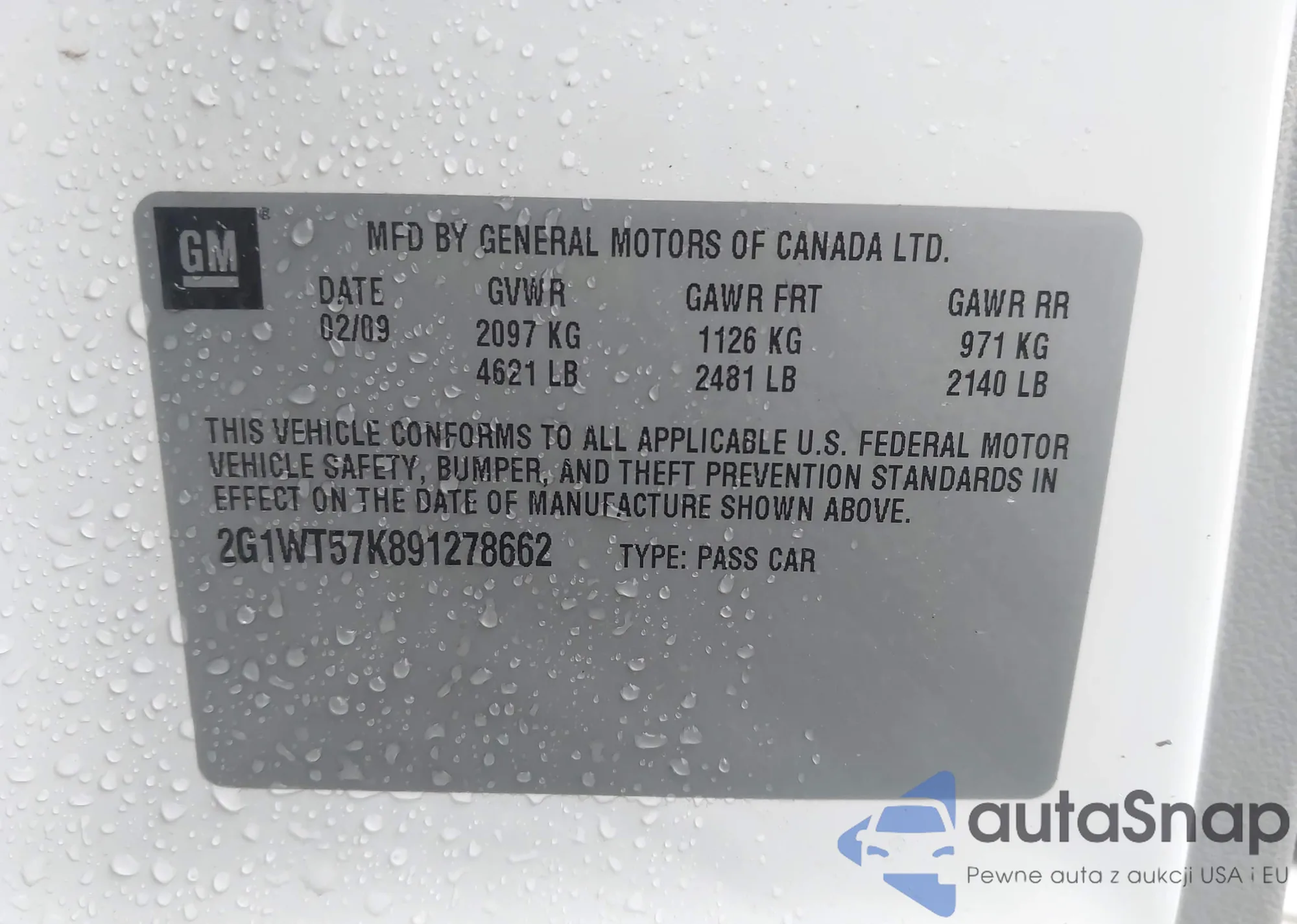 VIN: 2G1WT57K891278662