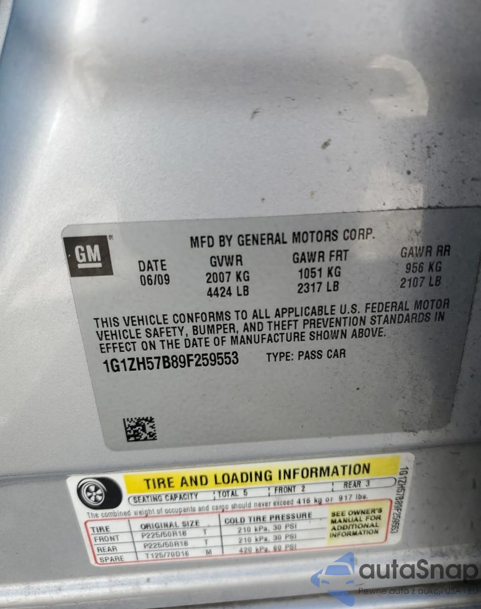 VIN: 1G1ZH57B89F259553