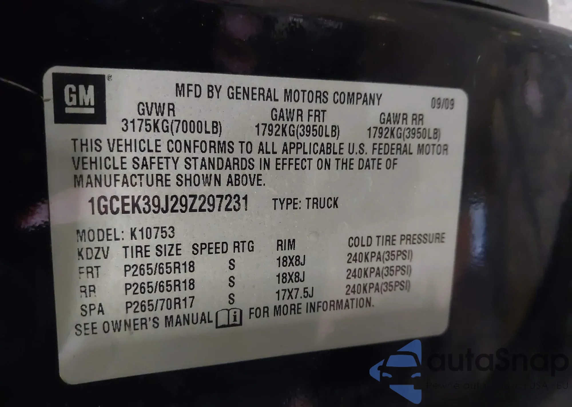 VIN: 1GCEK39J29Z297231