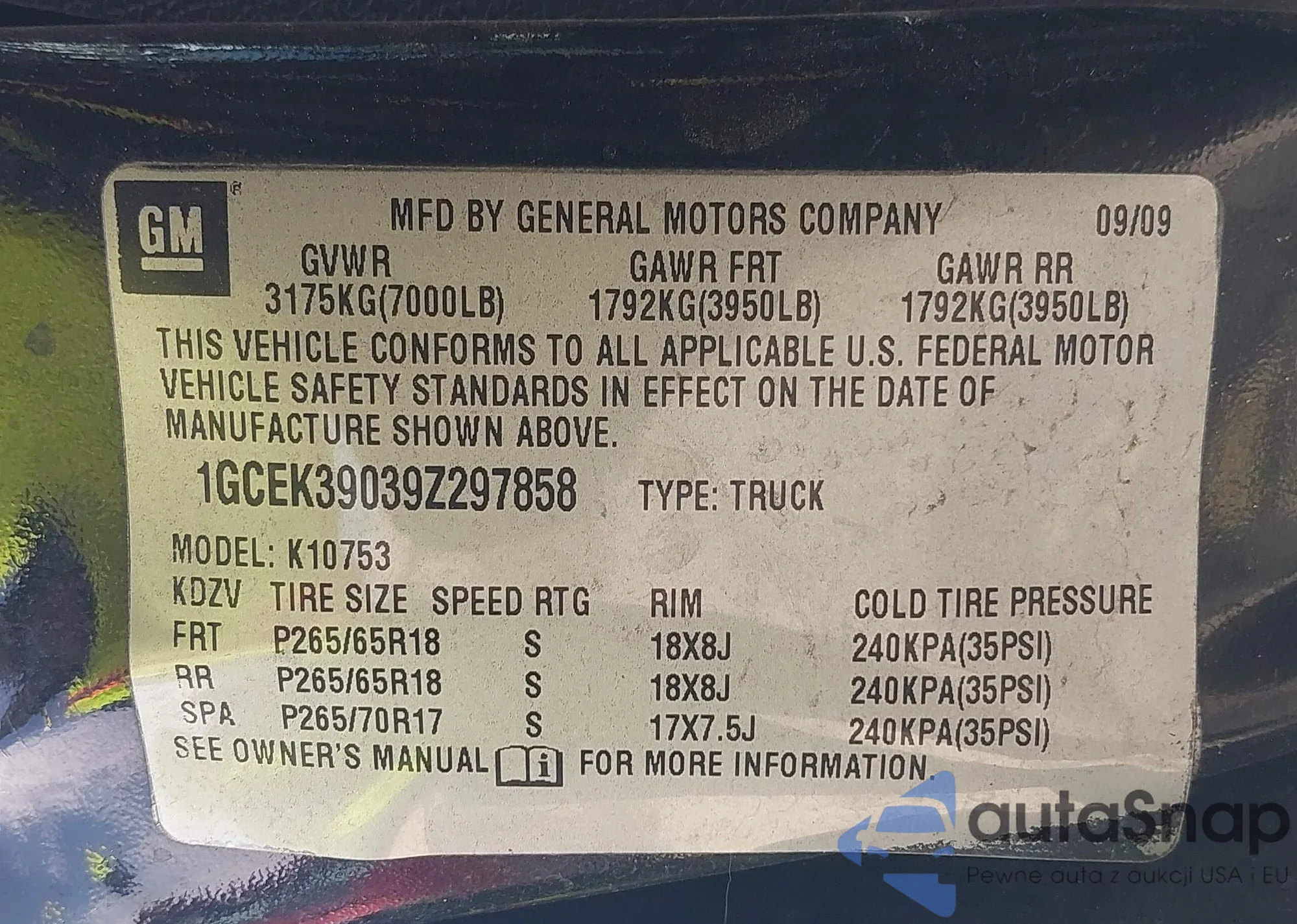 VIN: 1GCEK39039Z297858