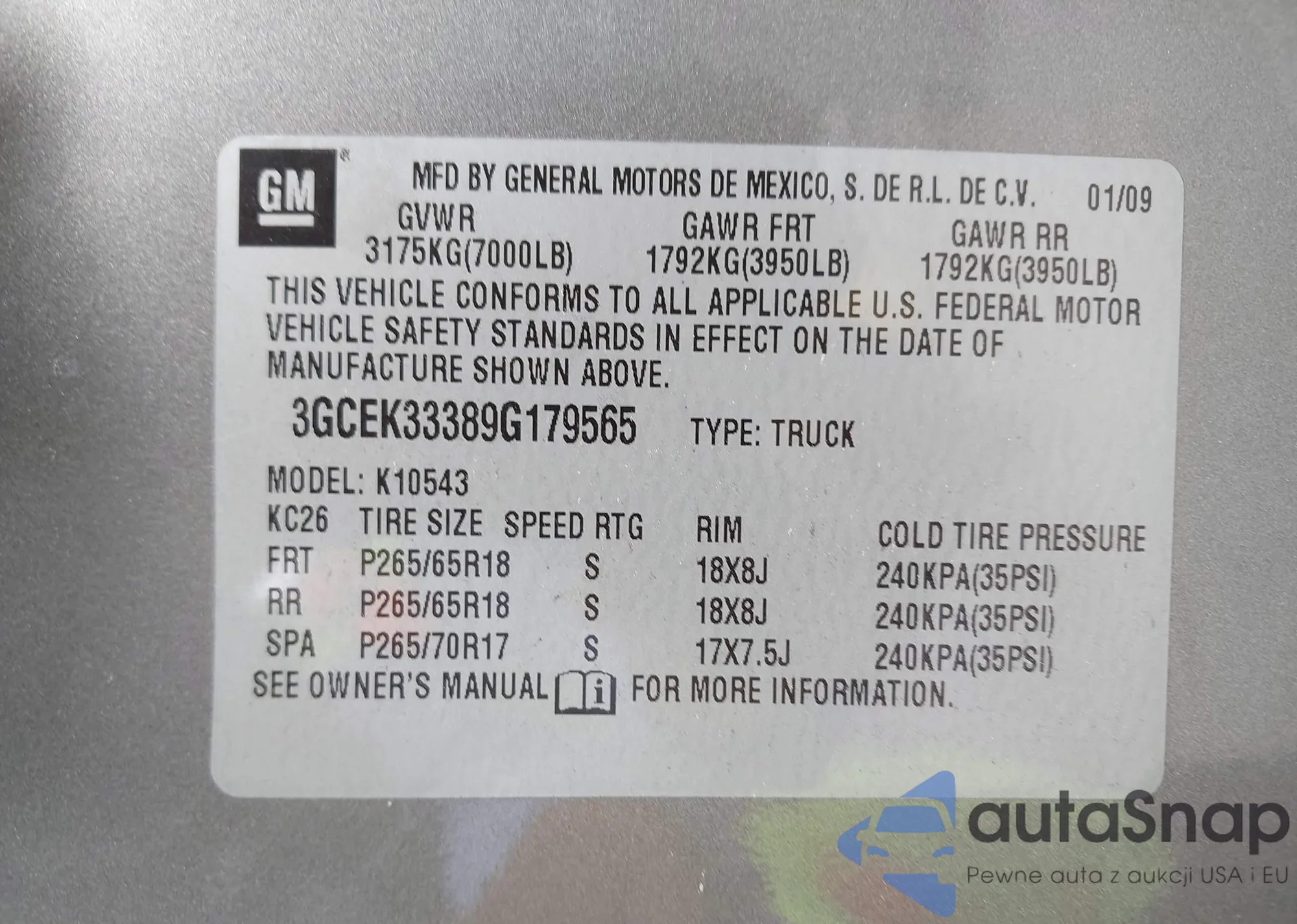 VIN: 3GCEK33389G179565