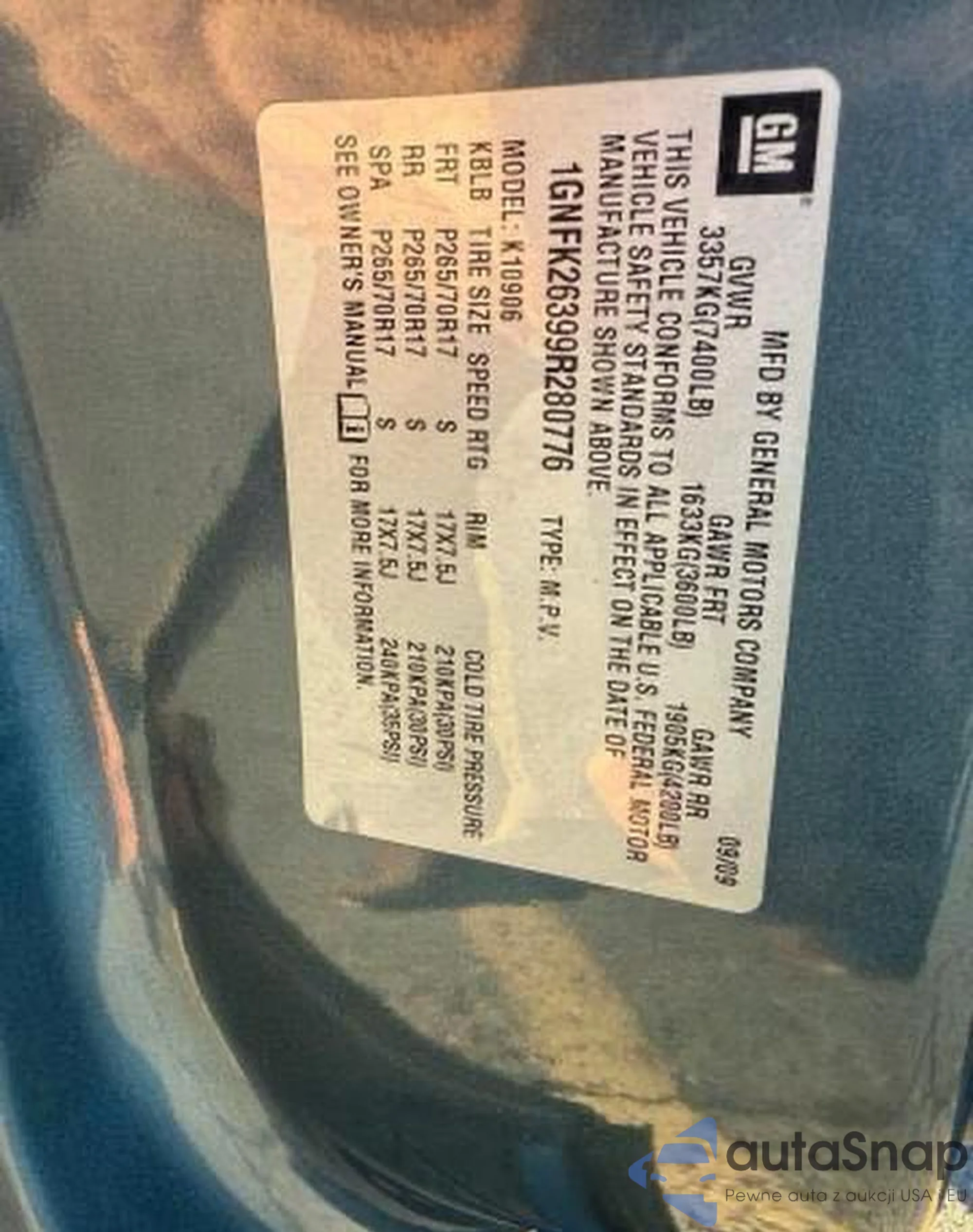 VIN: 1GNFK26399R280776