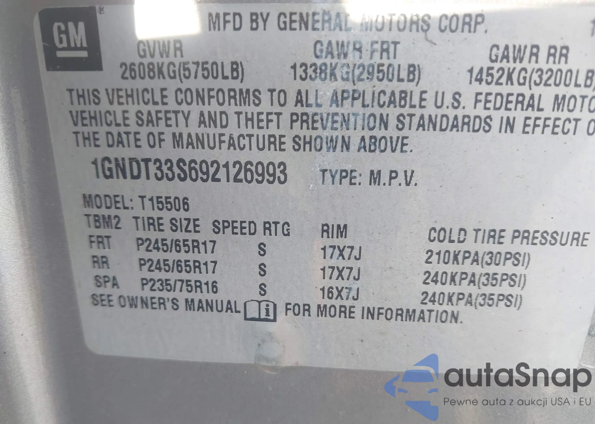 VIN: 1GNDT33S692126993