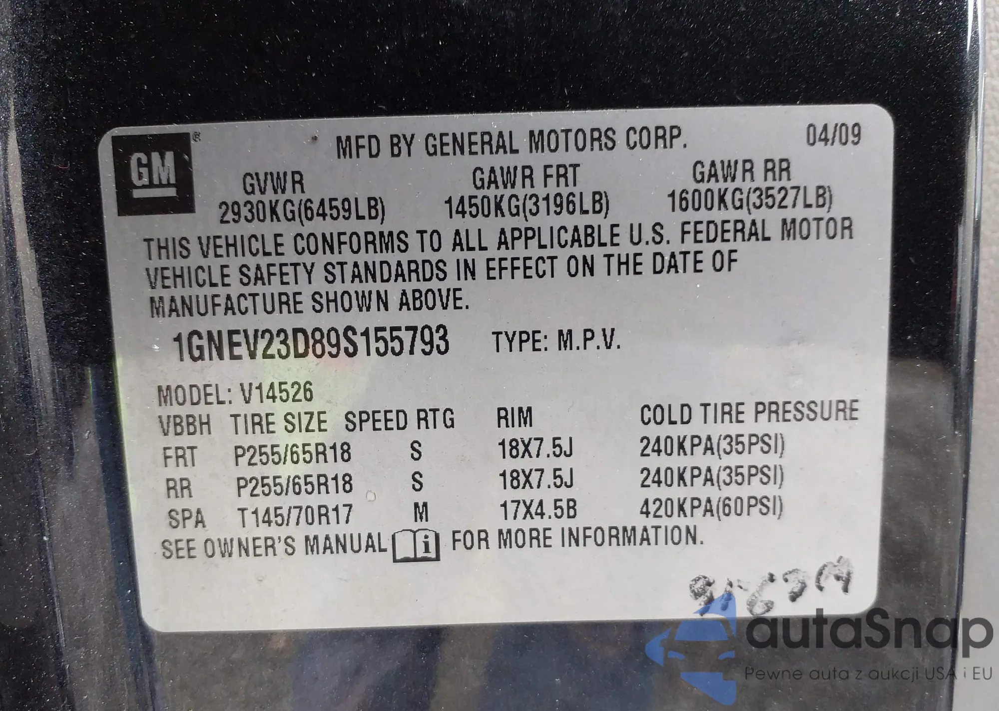VIN: 1GNEV23D89S155793